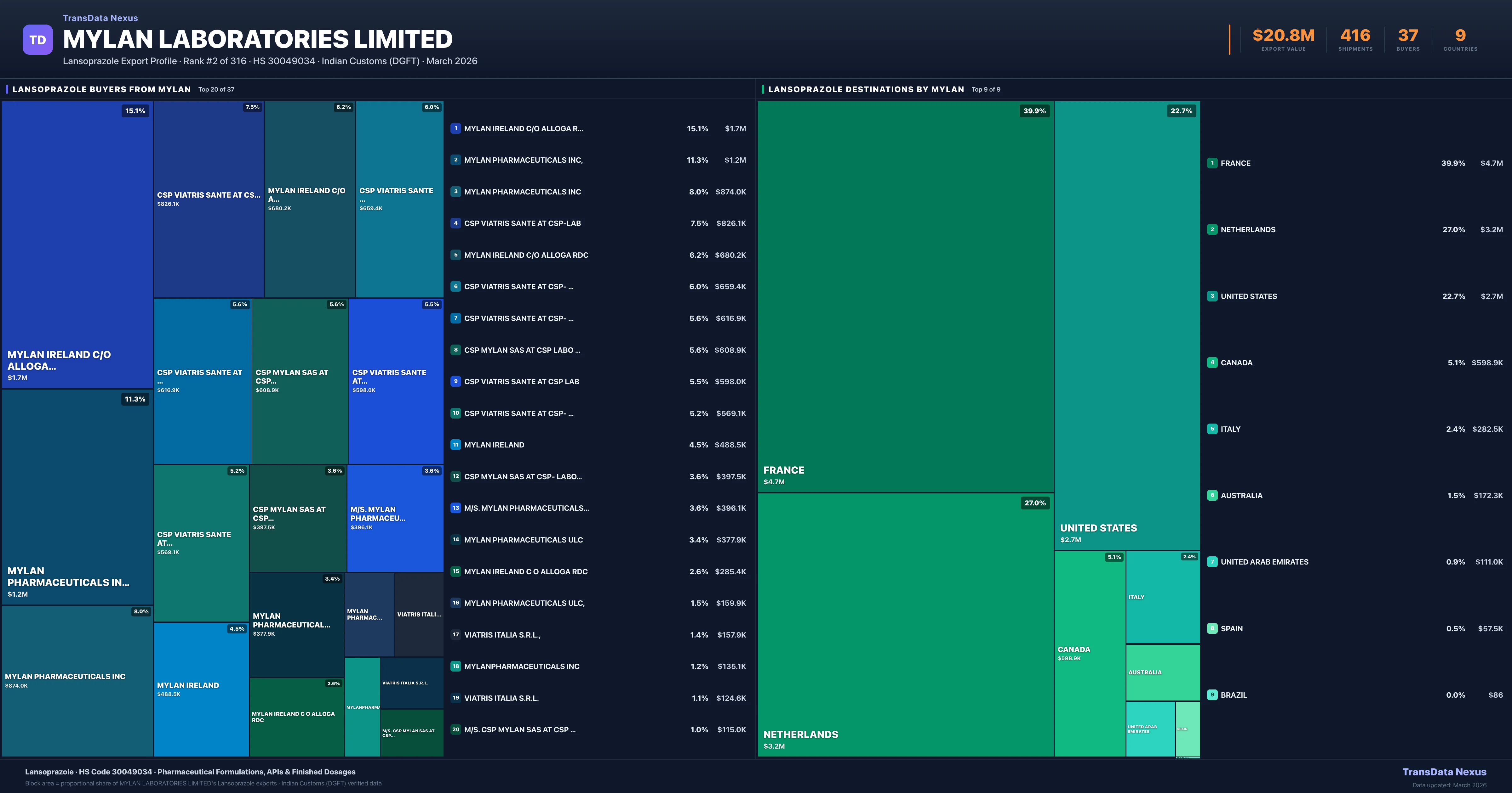 Mylan Laboratories Limited — Lansoprazole Export Profile: Buyers & Destinations