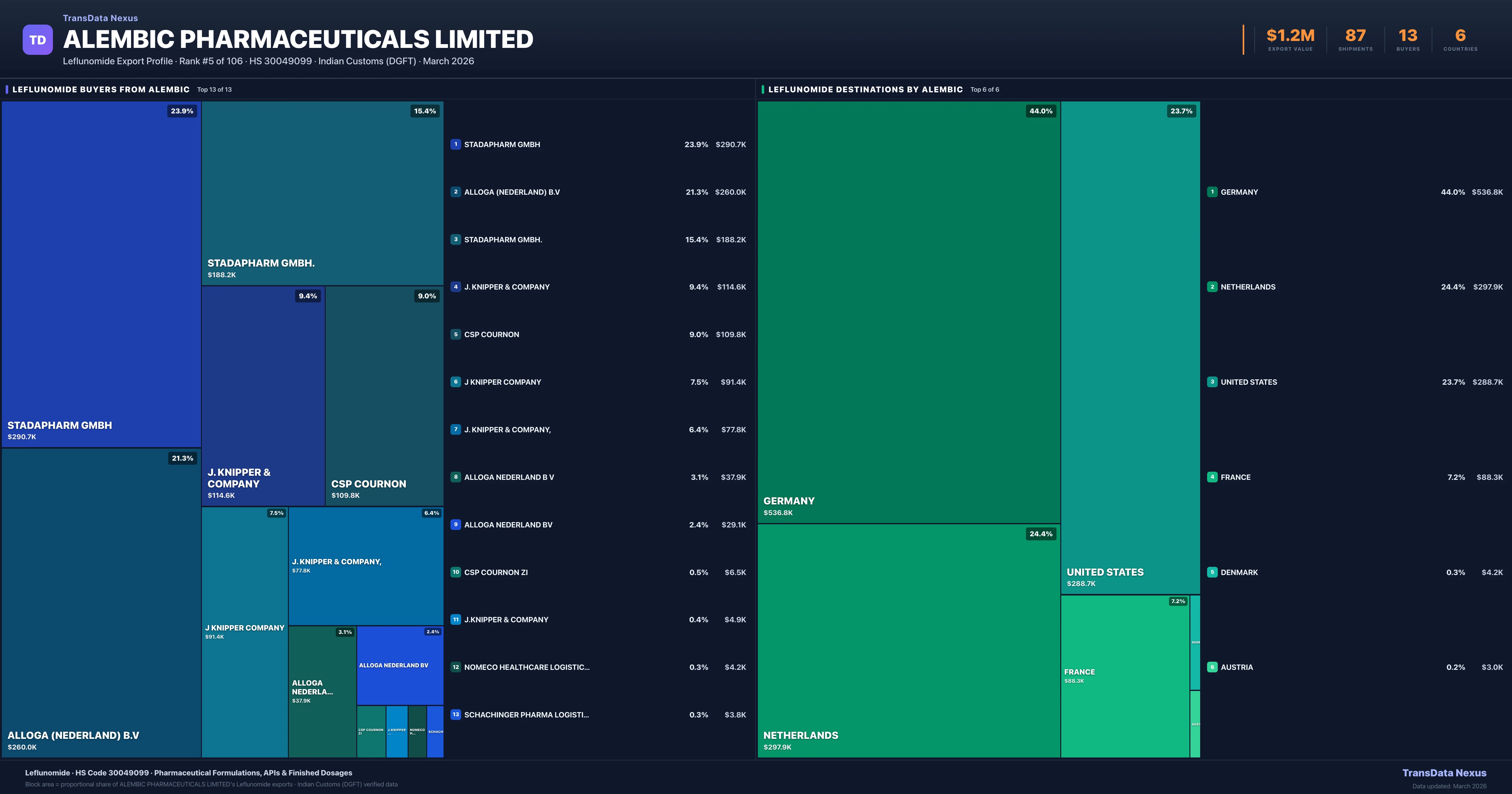 Alembic Pharmaceuticals Limited — Leflunomide Export Profile: Buyers & Destinations