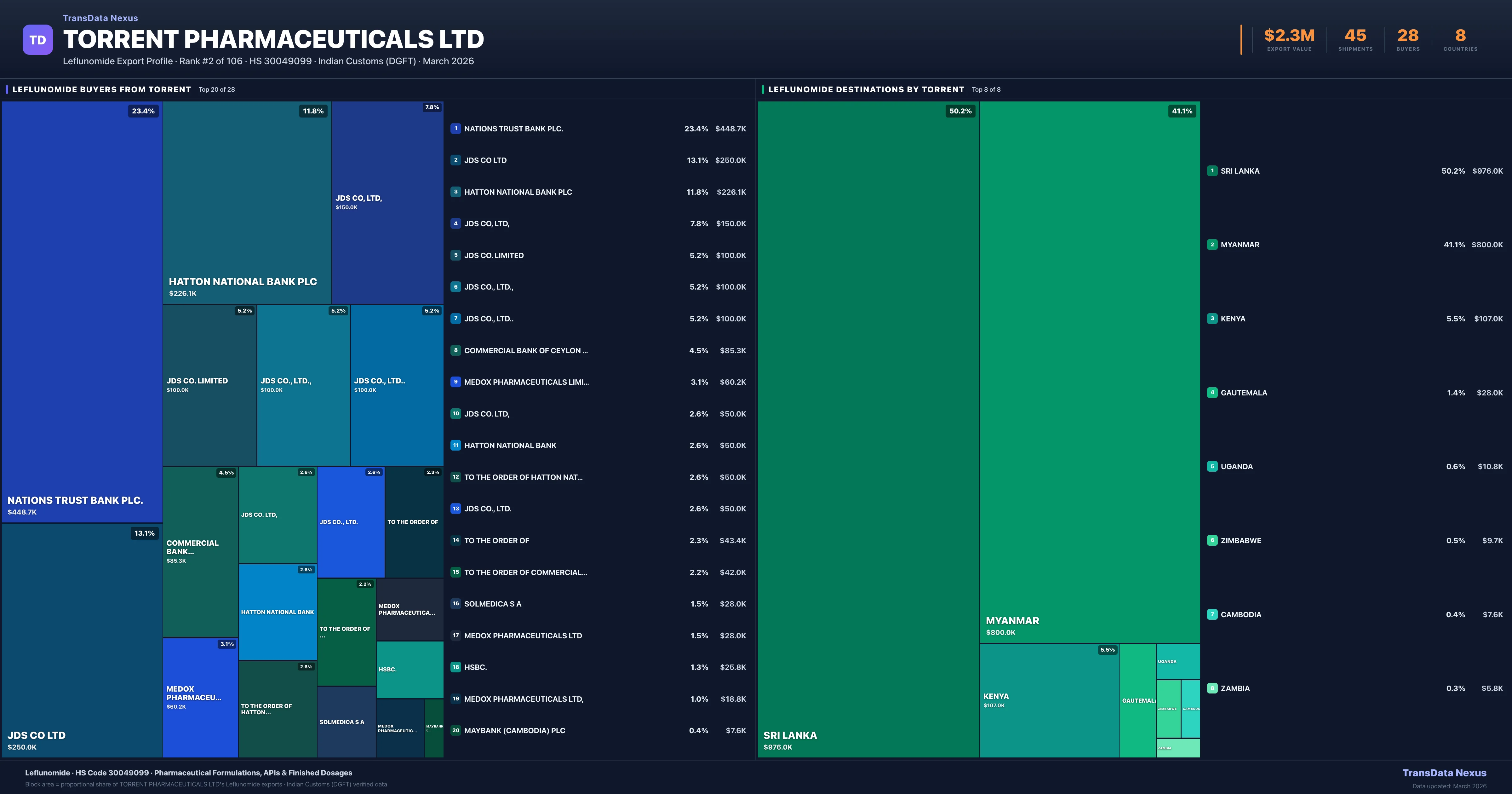 Torrent Pharmaceuticals Ltd — Leflunomide Export Profile: Buyers & Destinations