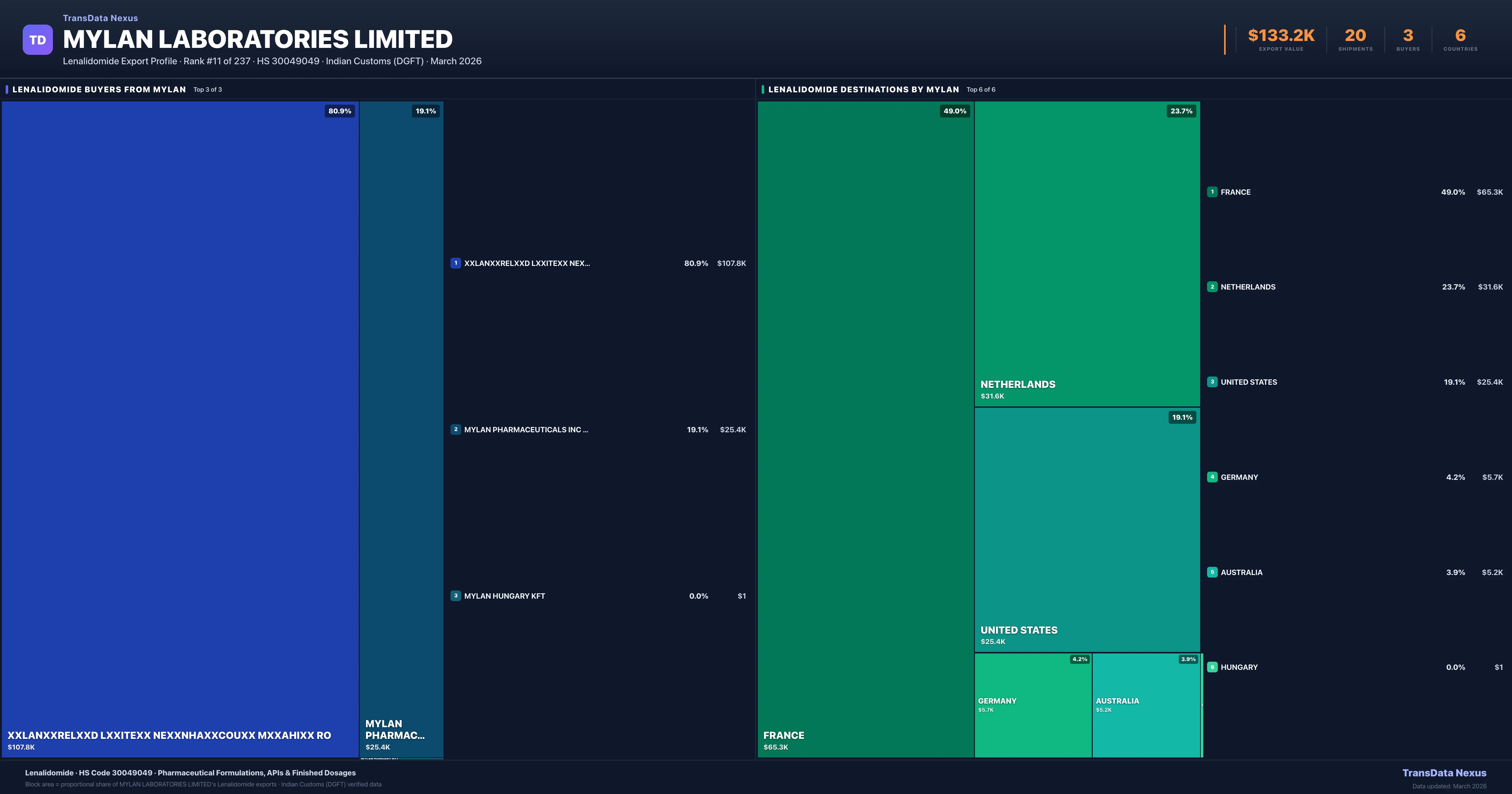 Mylan Laboratories Limited — Lenalidomide Export Profile: Buyers & Destinations
