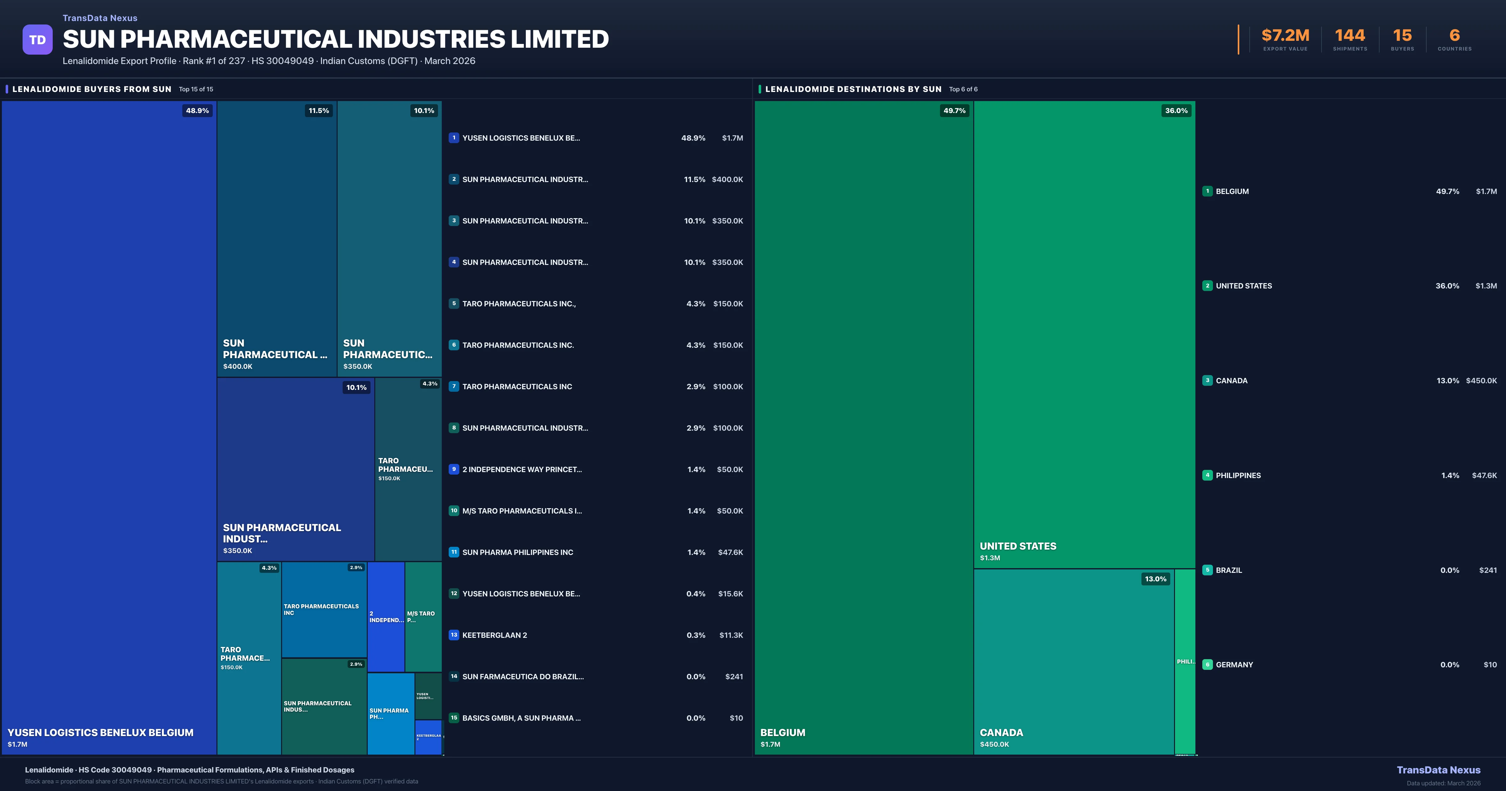 SUN Pharmaceutical Industries Limited — Lenalidomide Export Profile: Buyers & Destinations