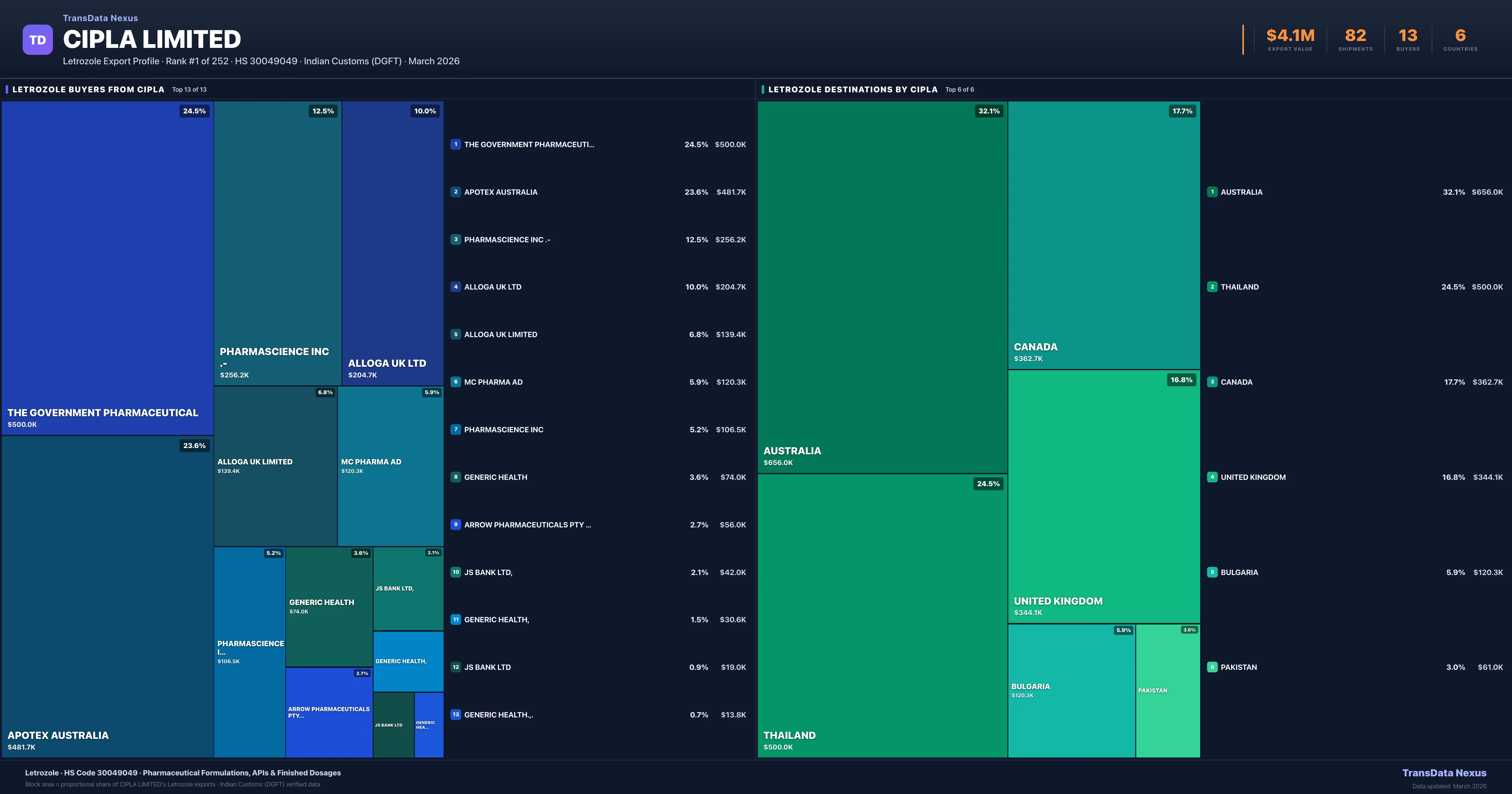 Cipla Limited — Letrozole Export Profile: Buyers & Destinations