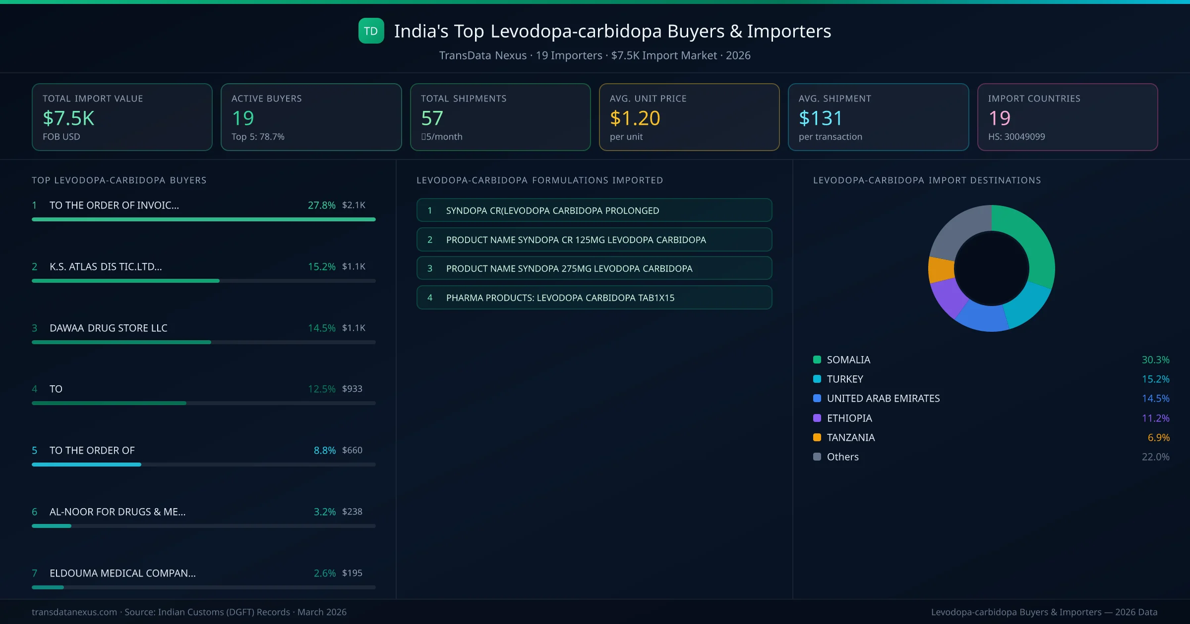 Who Buys Levodopa Carbidopa from India โ 19 Importers Behind a $7.5K Market