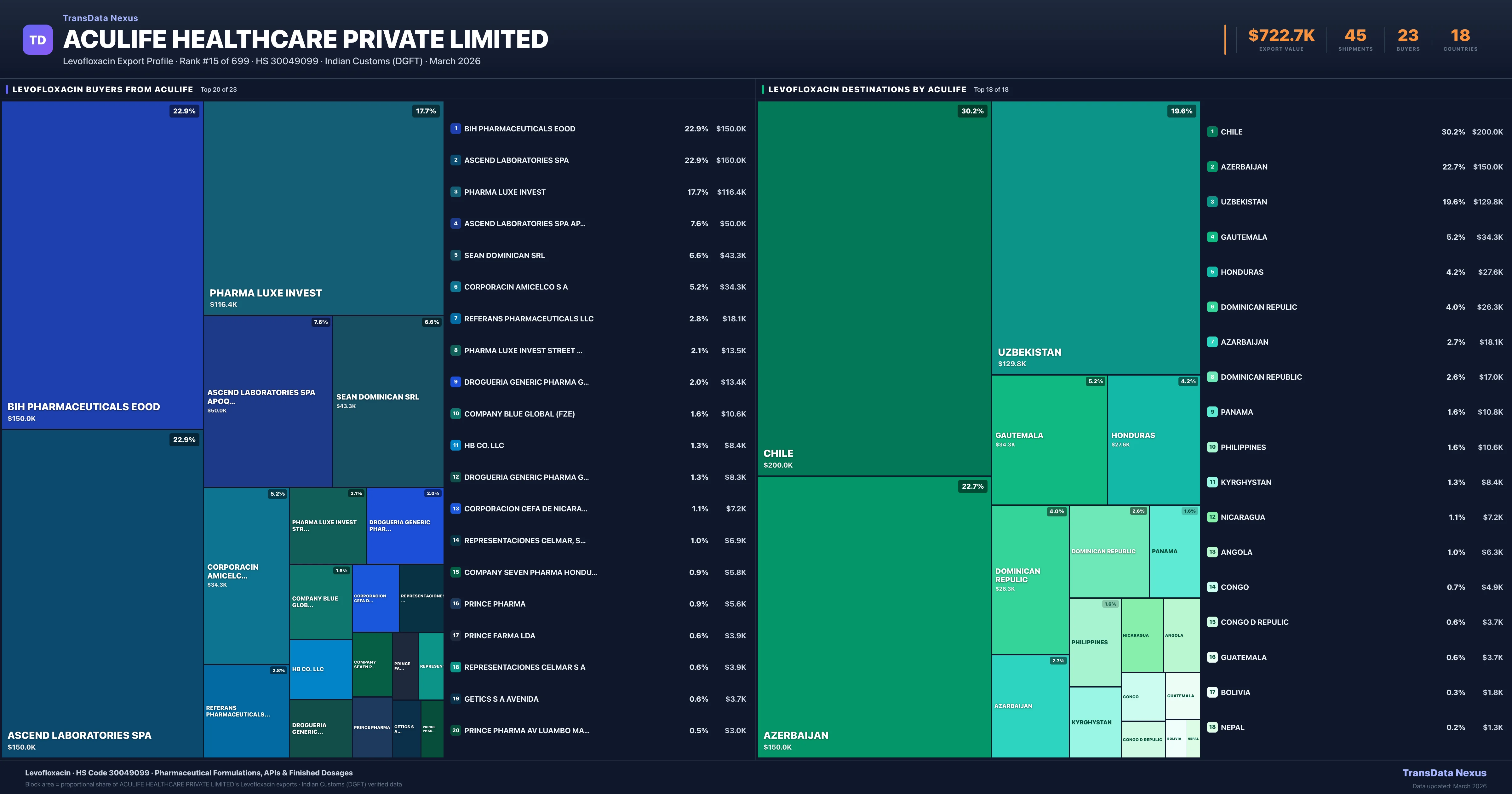 Aculife Healthcare Private Limited β Levofloxacin Export Profile: Buyers & Destinations