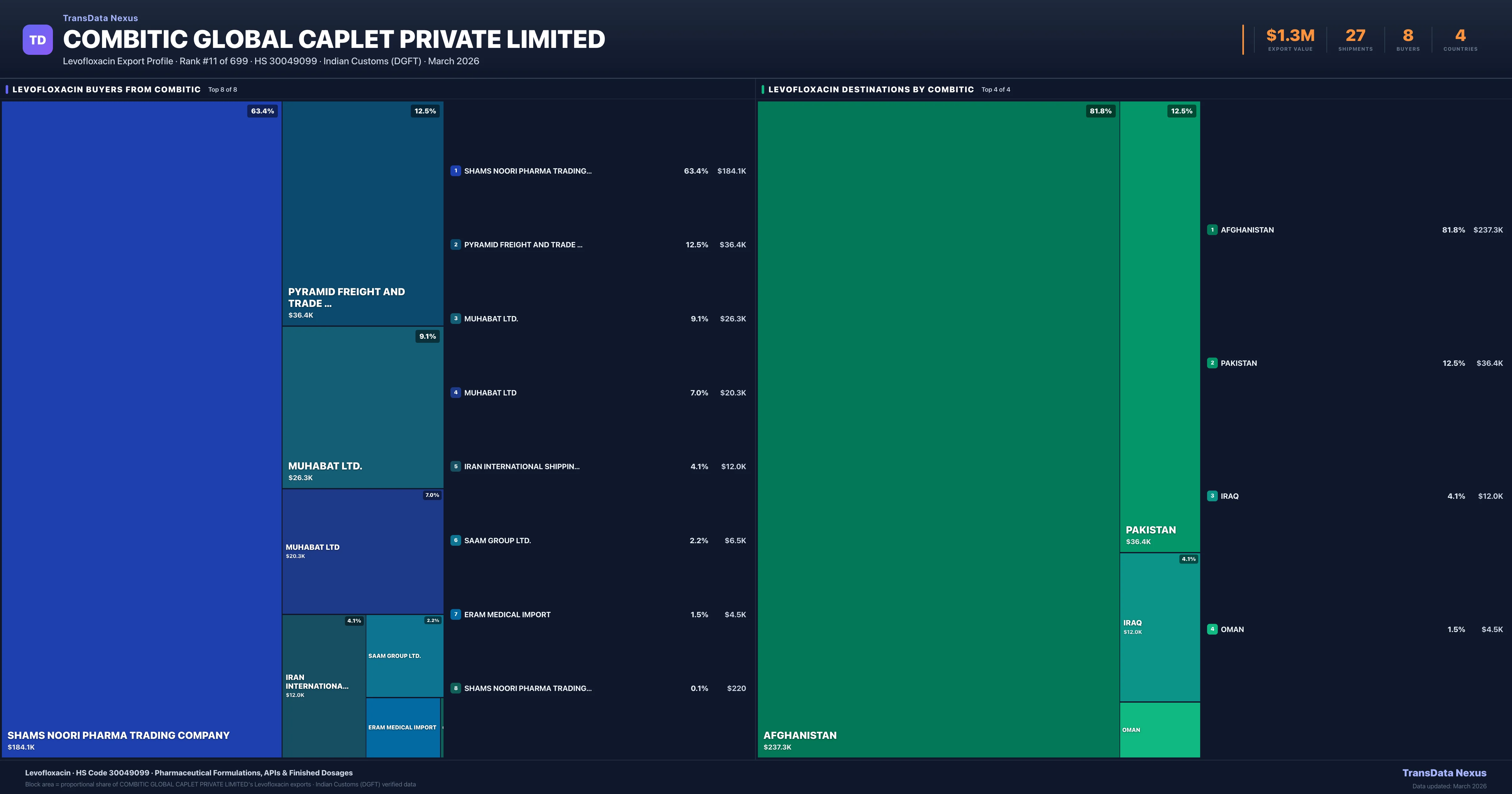 Combitic Global Caplet Private Limited — Levofloxacin Export Profile: Buyers & Destinations