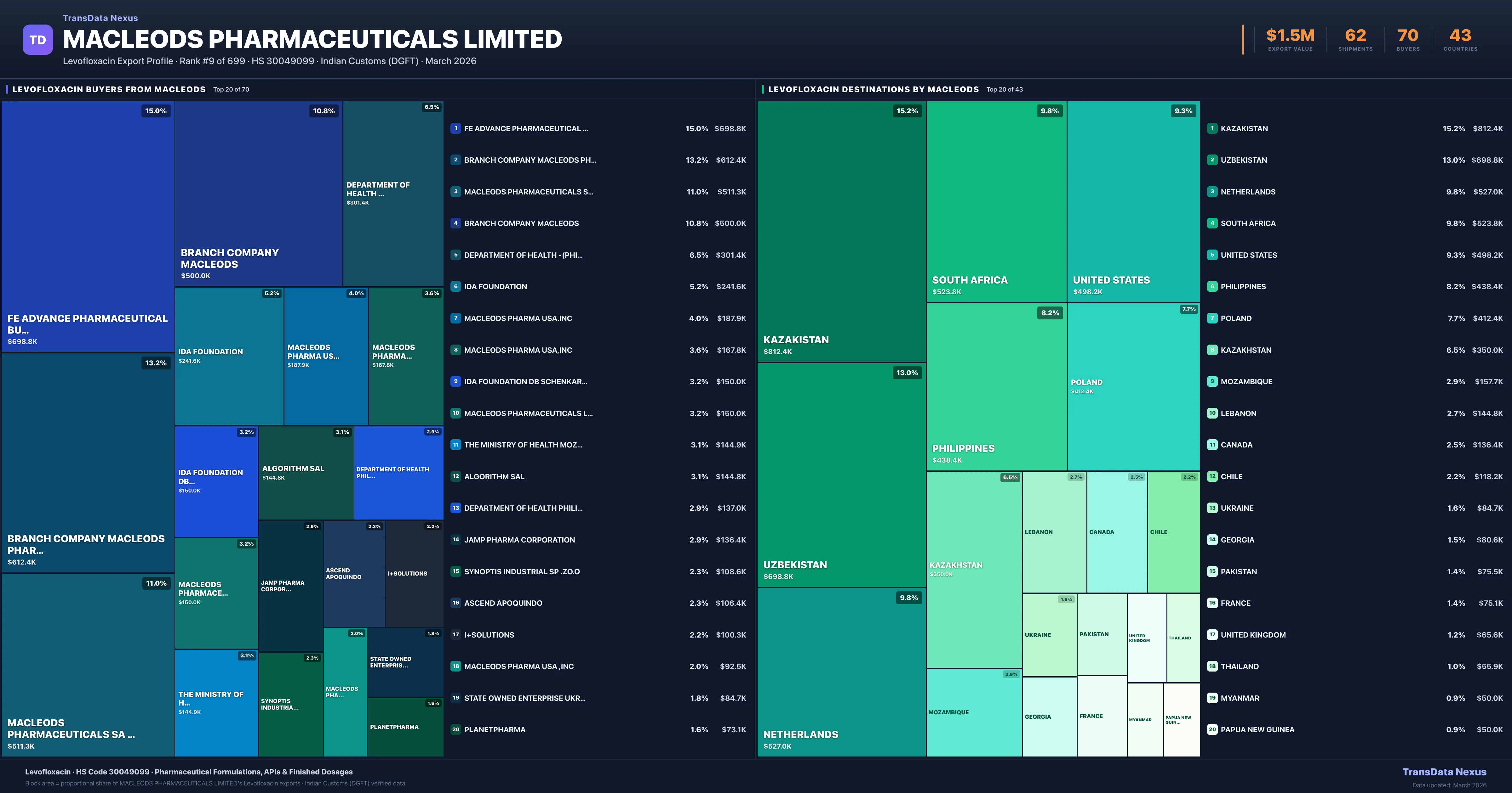 Macleods Pharmaceuticals Limited — Levofloxacin Export Profile: Buyers & Destinations