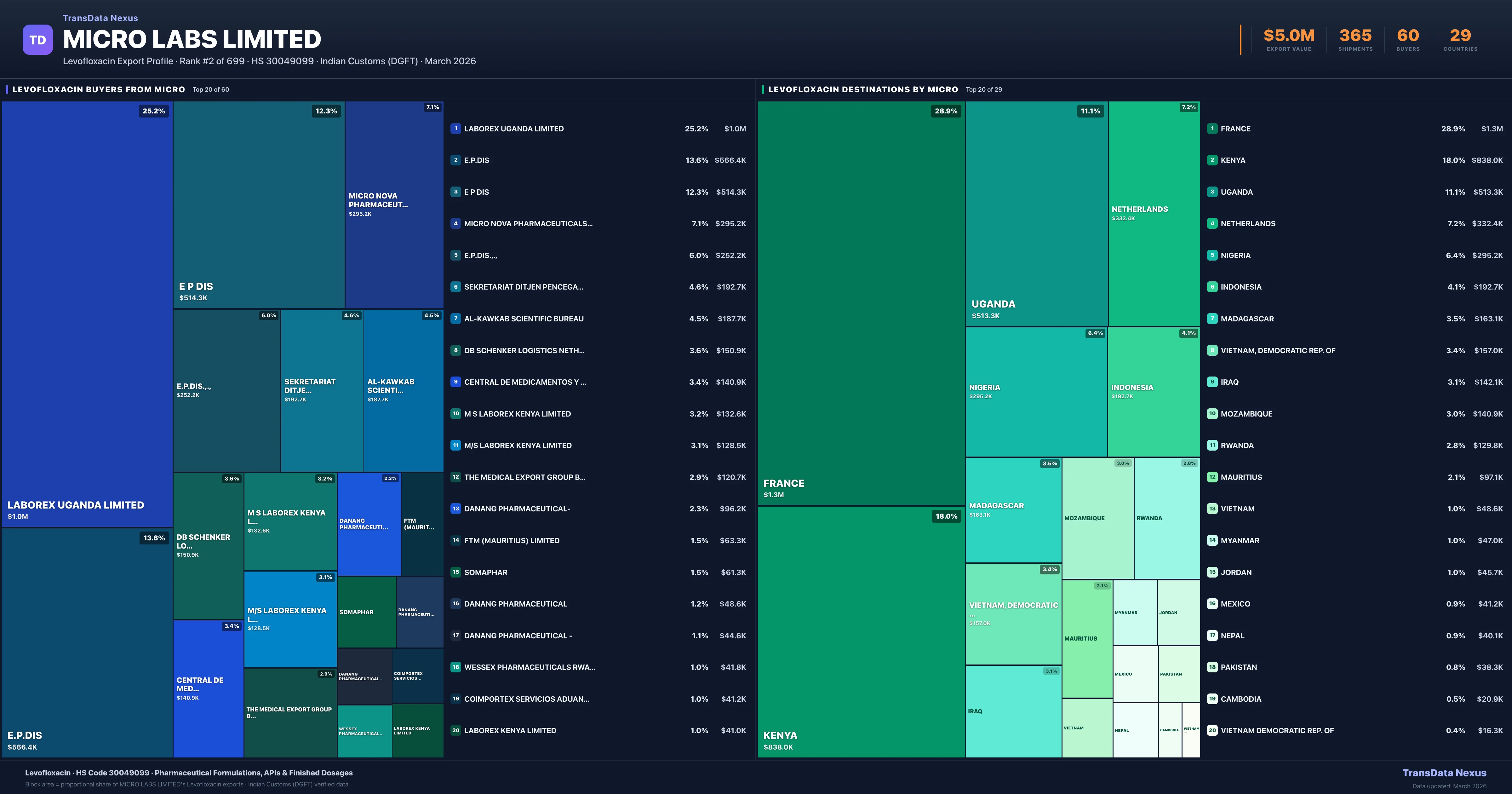 Micro Labs Limited — Levofloxacin Export Profile: Buyers & Destinations