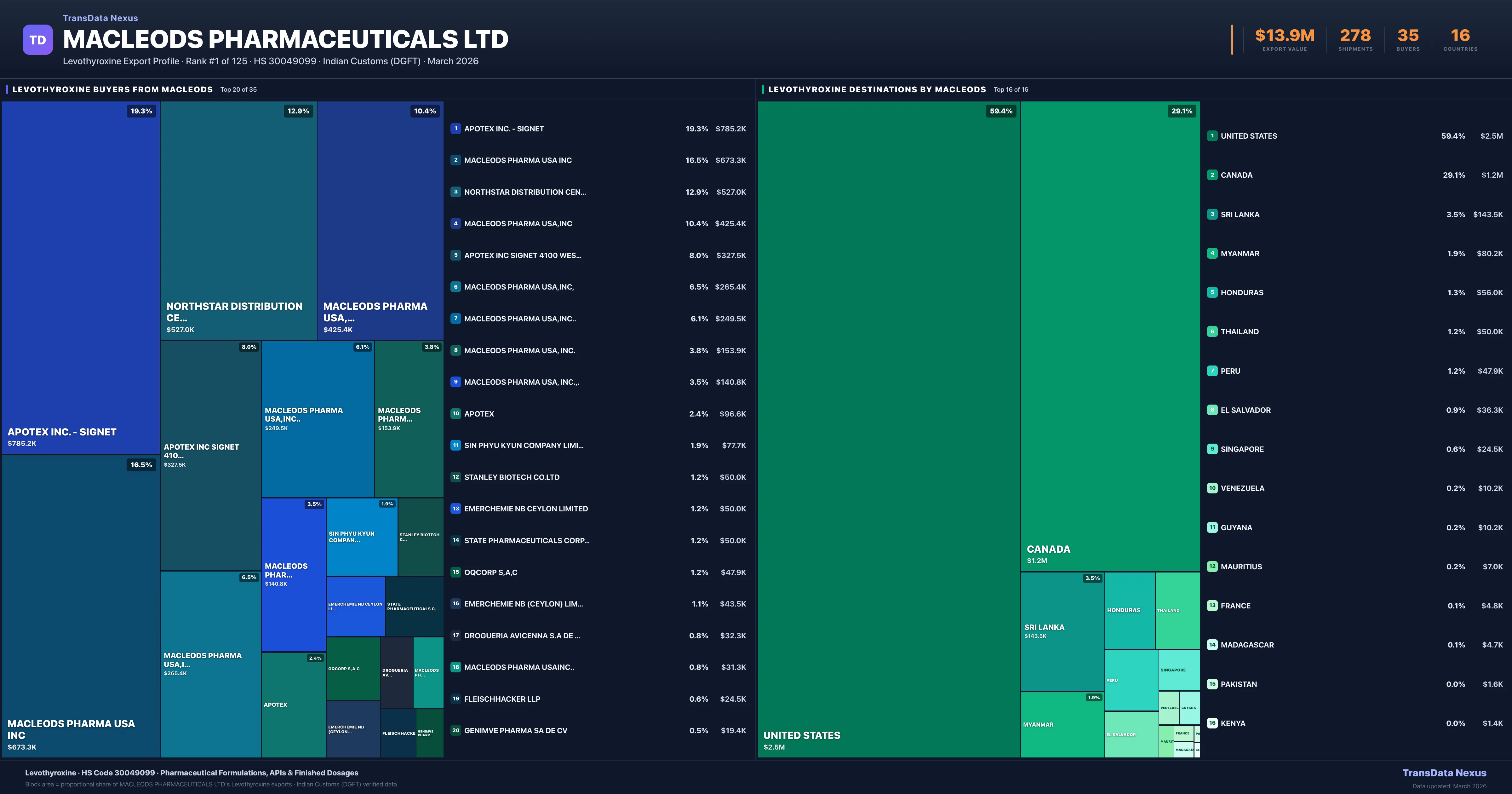 Macleods Pharmaceuticals Ltd — Levothyroxine Export Profile: Buyers & Destinations