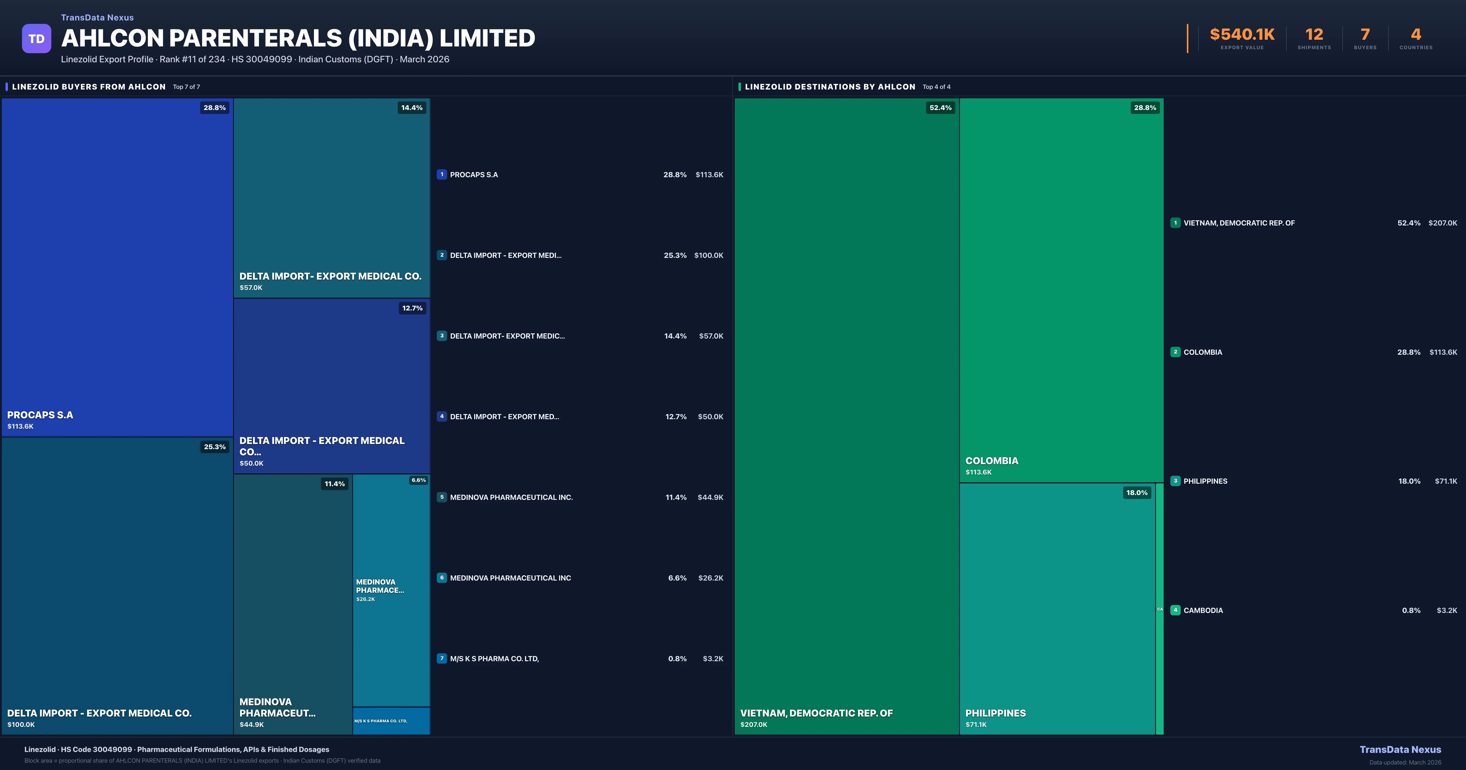 Ahlcon Parenterals (india) Limited — Linezolid Export Profile: Buyers & Destinations