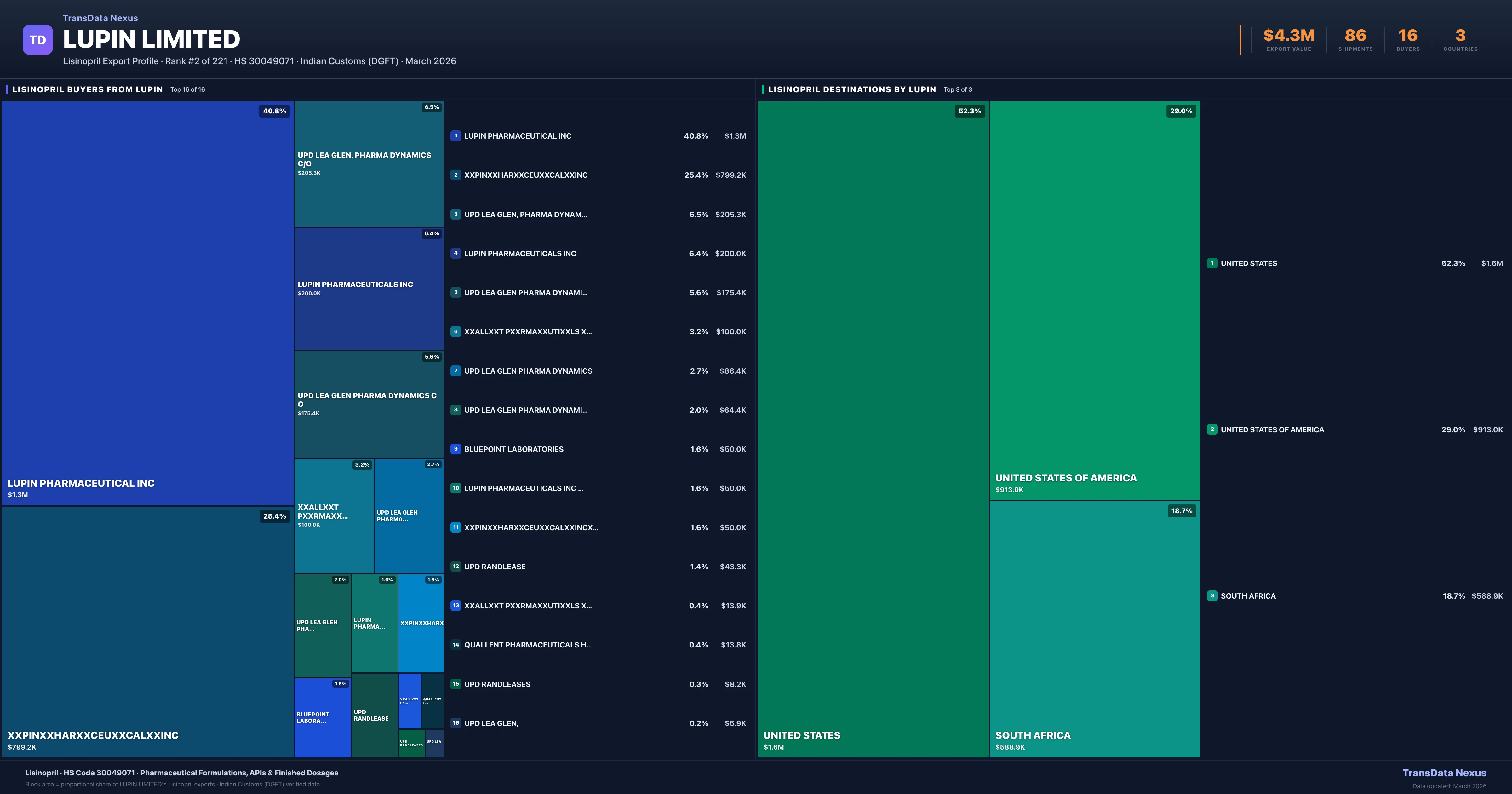 Lupin Limited — Lisinopril Export Profile: Buyers & Destinations