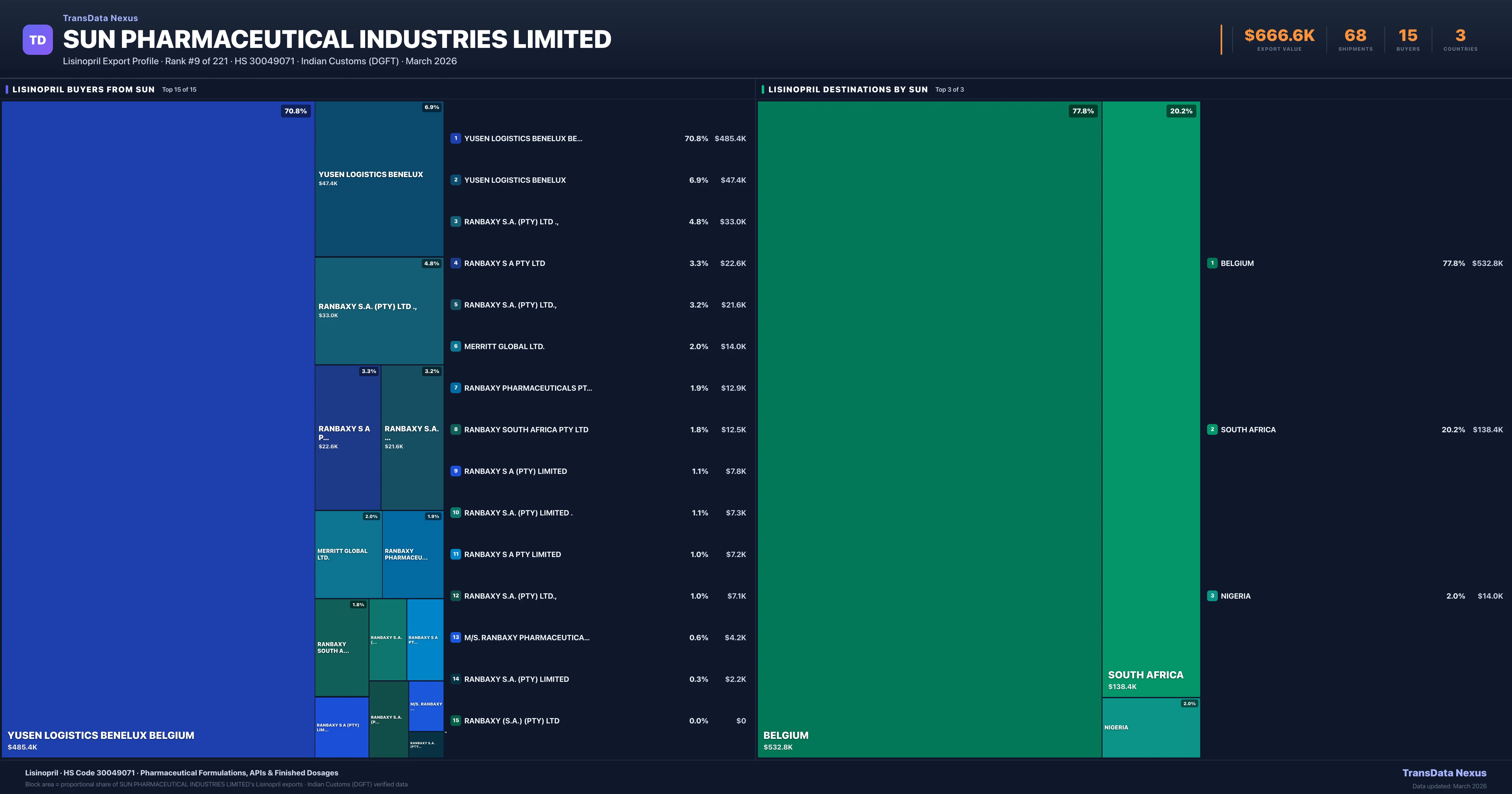 SUN Pharmaceutical Industries Limited — Lisinopril Export Profile: Buyers & Destinations