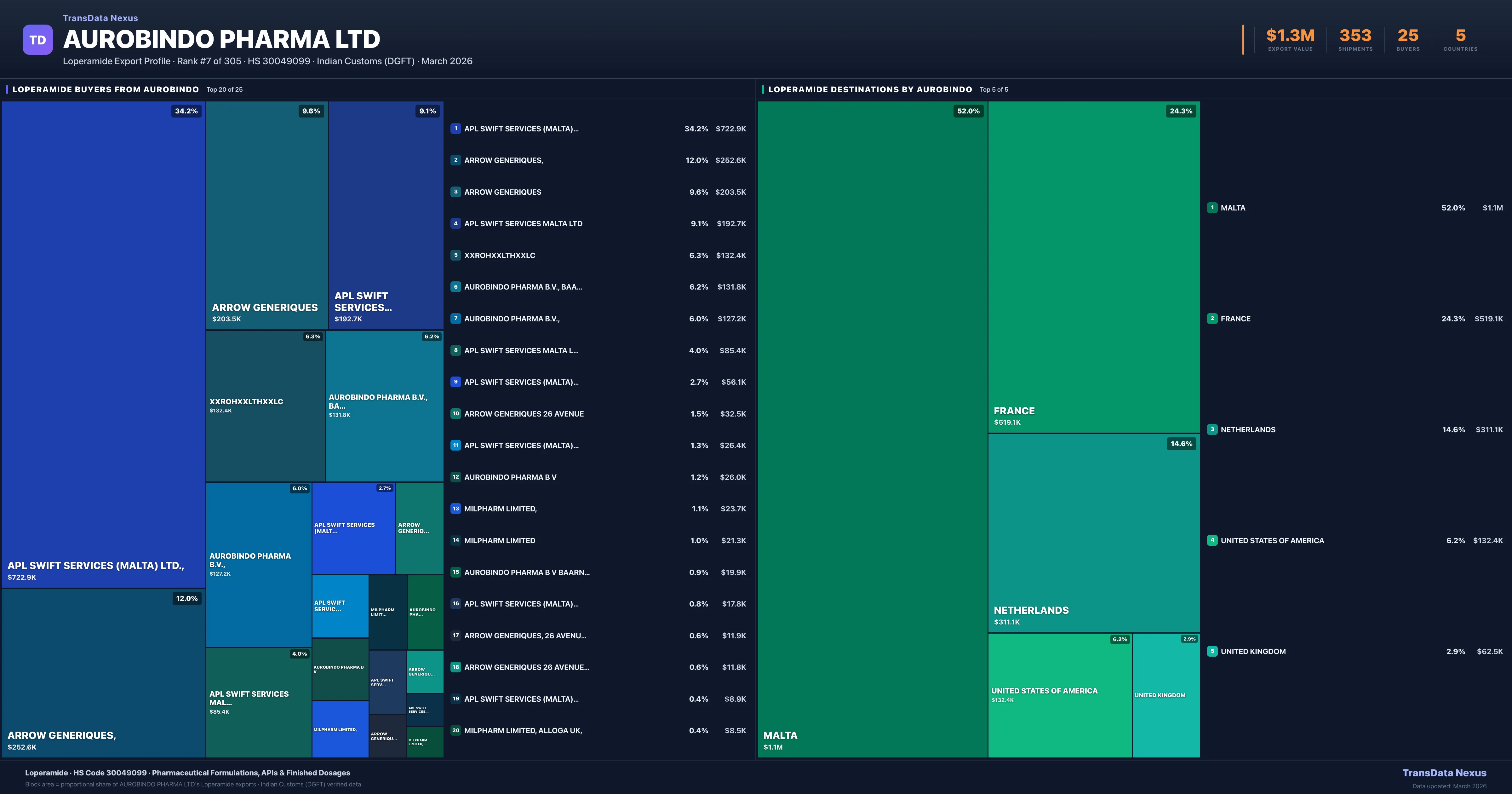 Aurobindo Pharma Ltd β Loperamide Export Profile: Buyers & Destinations