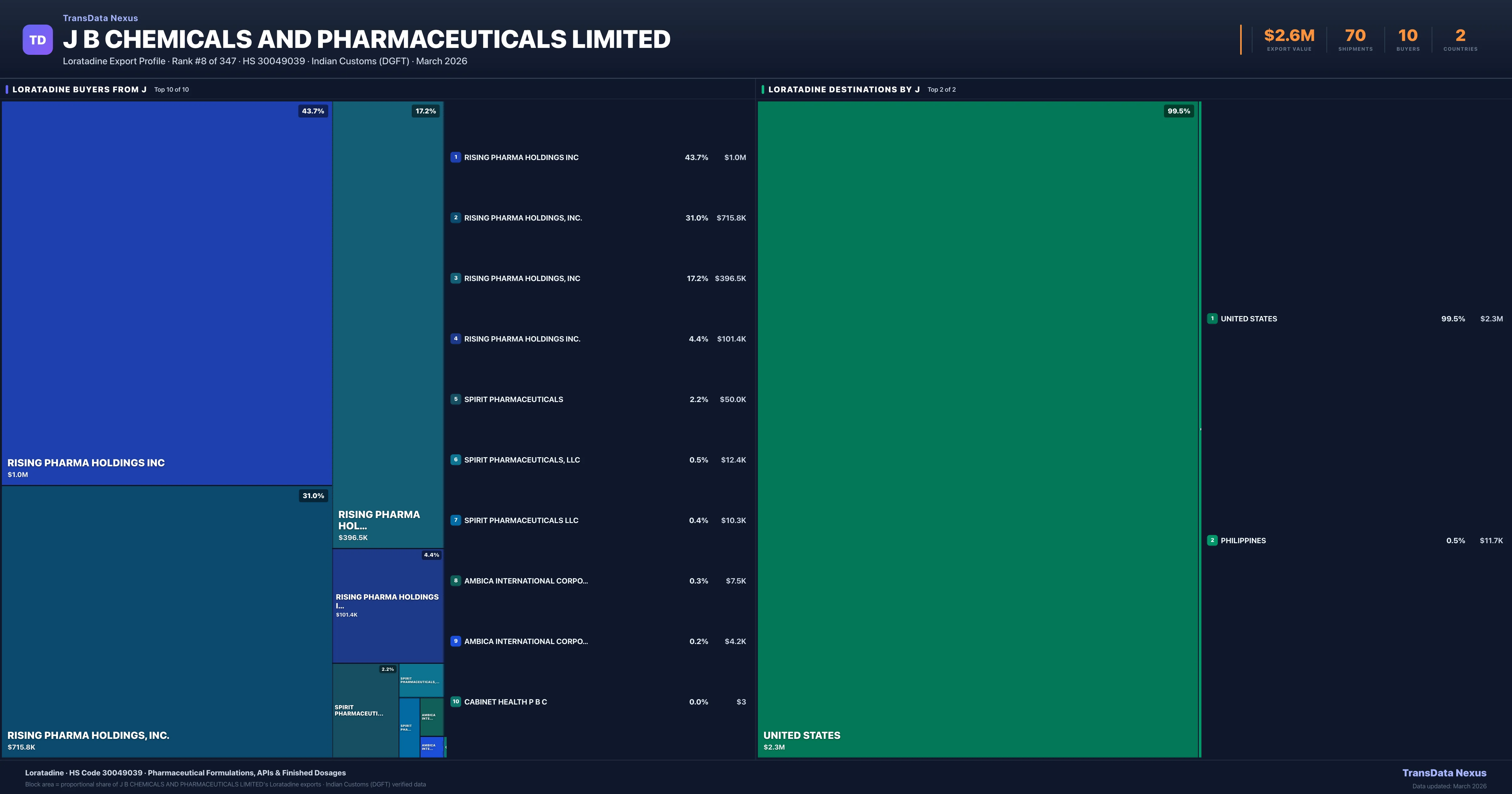 J B Chemicals AND Pharmaceuticals Limited β Loratadine Export Profile: Buyers & Destinations