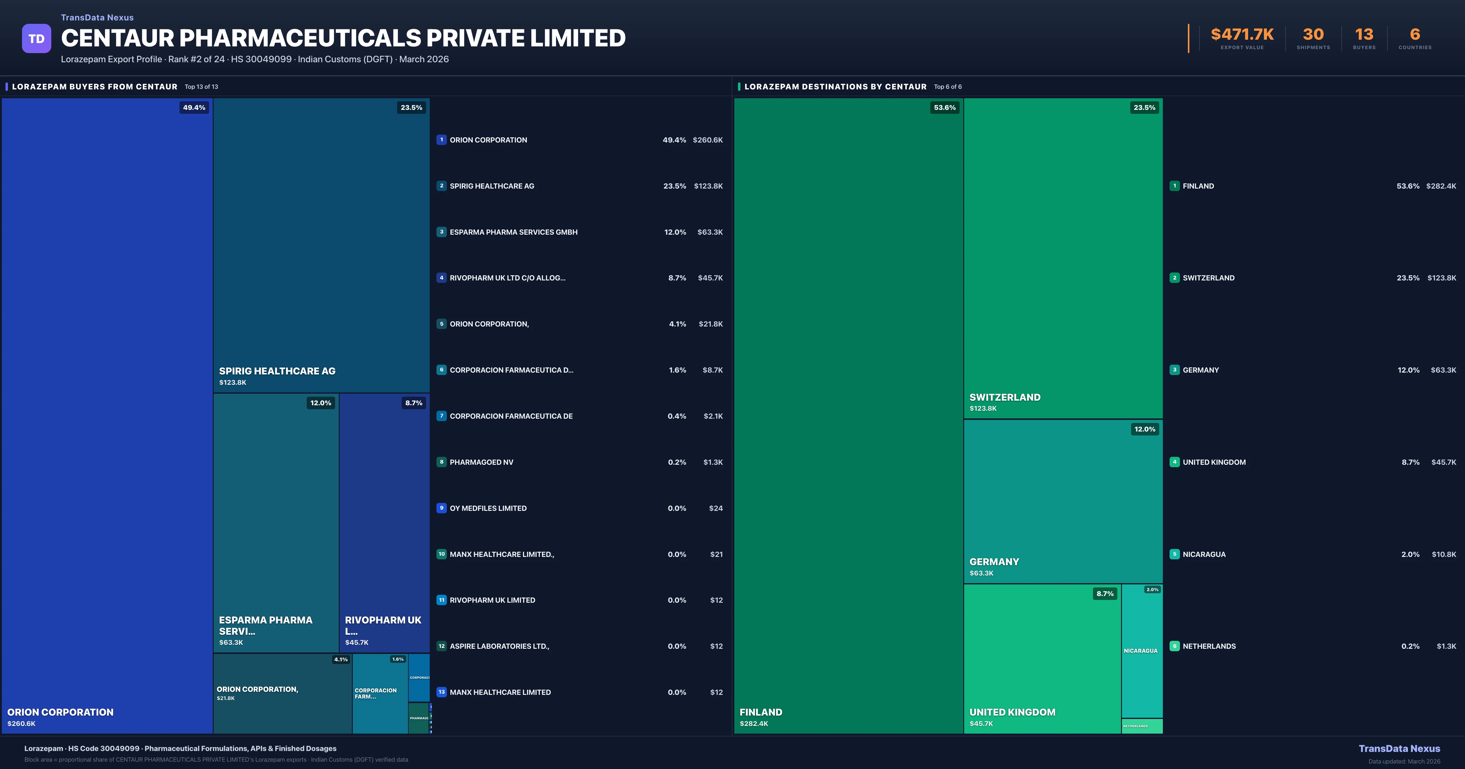 Centaur Pharmaceuticals Private Limited — Lorazepam Export Profile: Buyers & Destinations