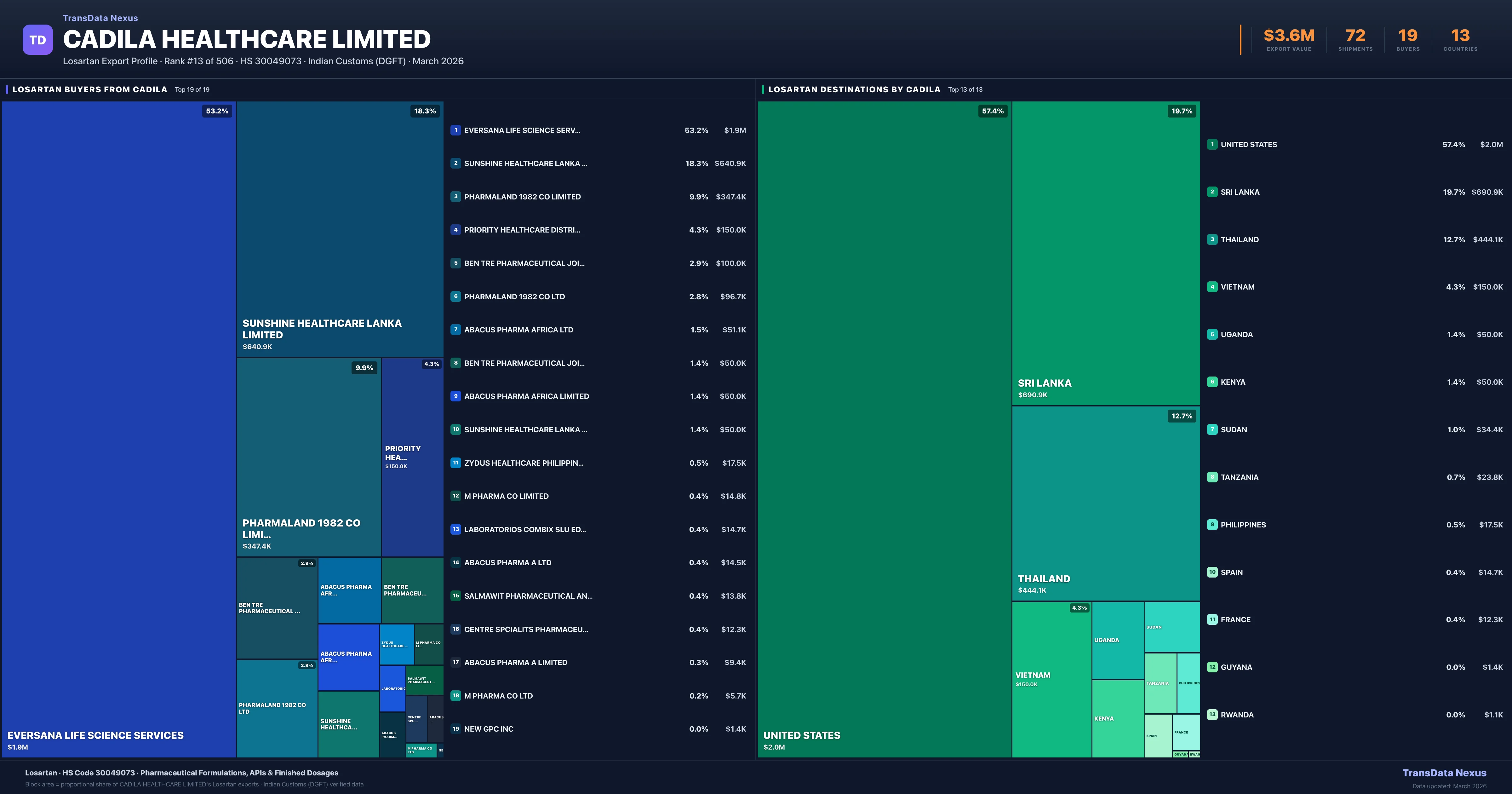 Cadila Healthcare Limited — Losartan Export Profile: Buyers & Destinations