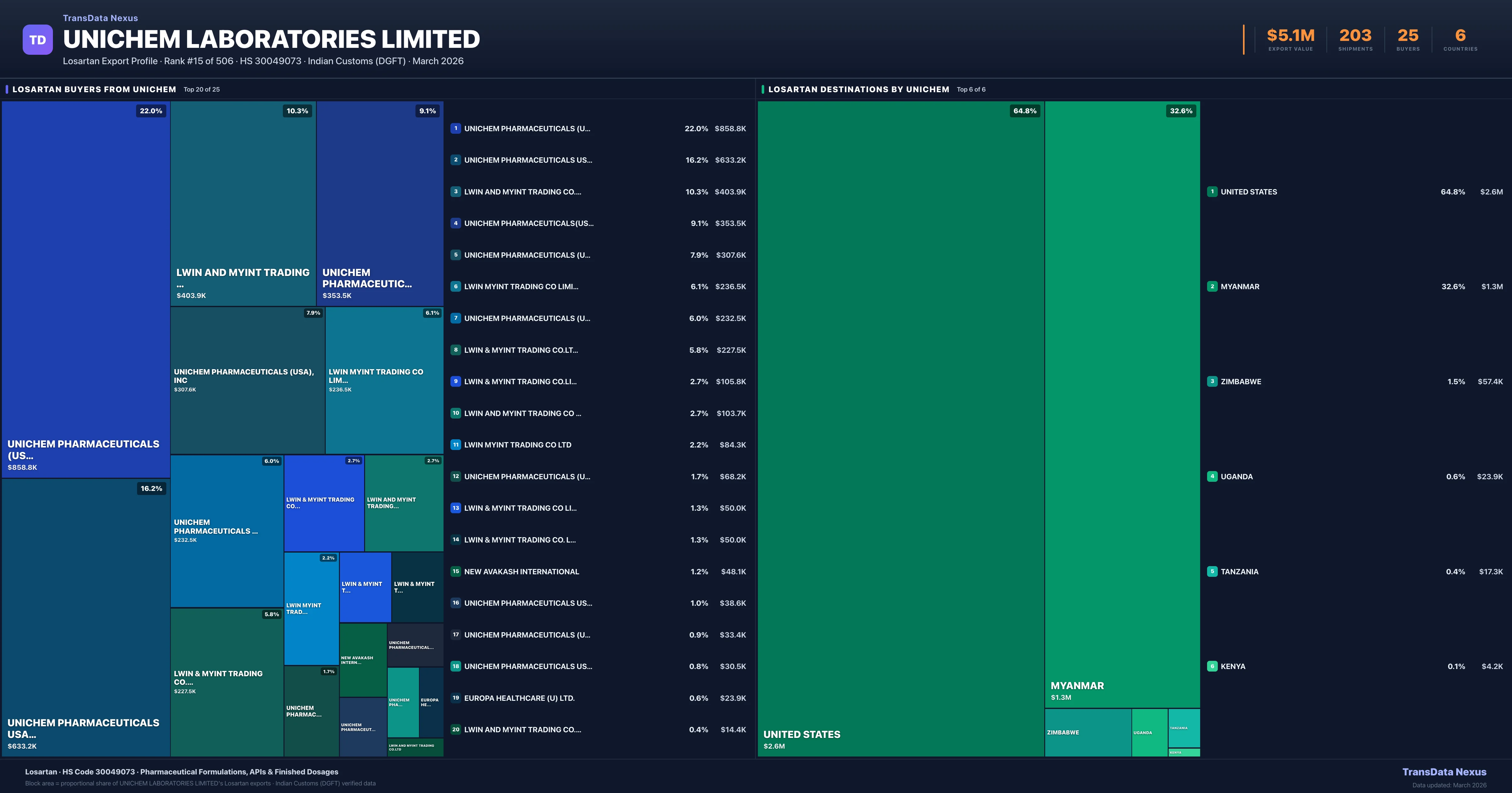 Unichem Laboratories Limited — Losartan Export Profile: Buyers & Destinations
