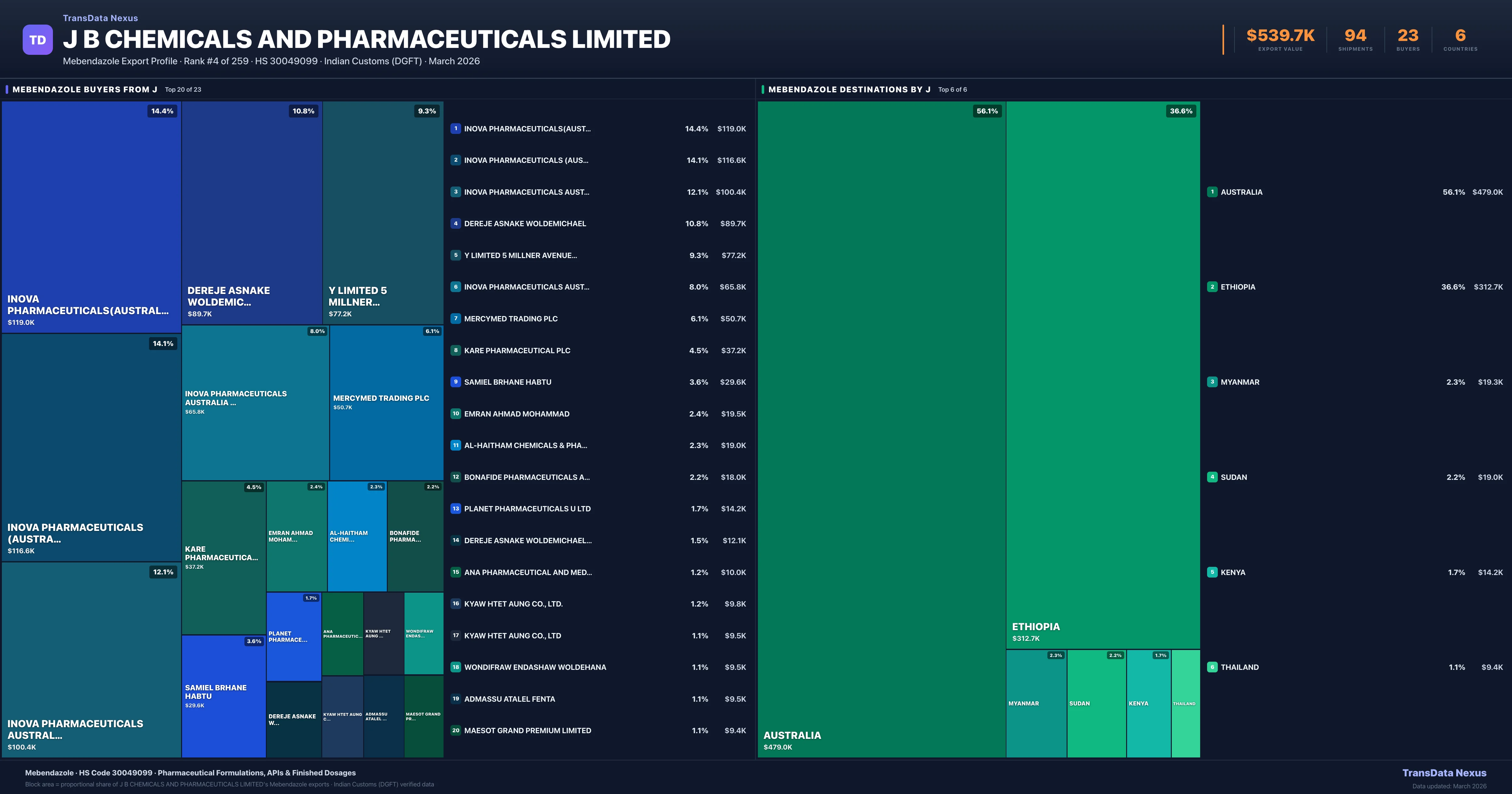 J B Chemicals AND Pharmaceuticals Limited — Mebendazole Export Profile: Buyers & Destinations