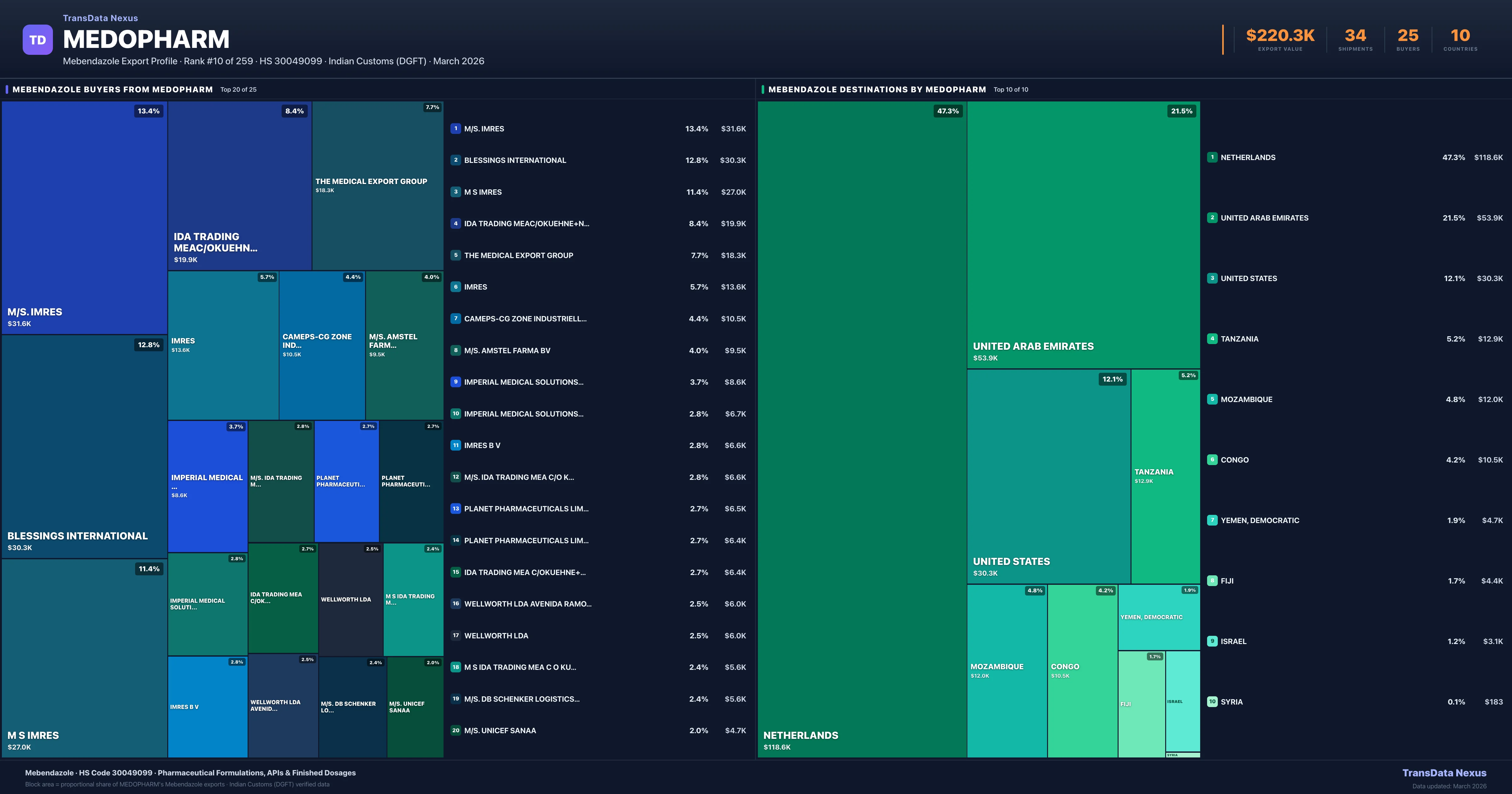 Medopharm — Mebendazole Export Profile: Buyers & Destinations