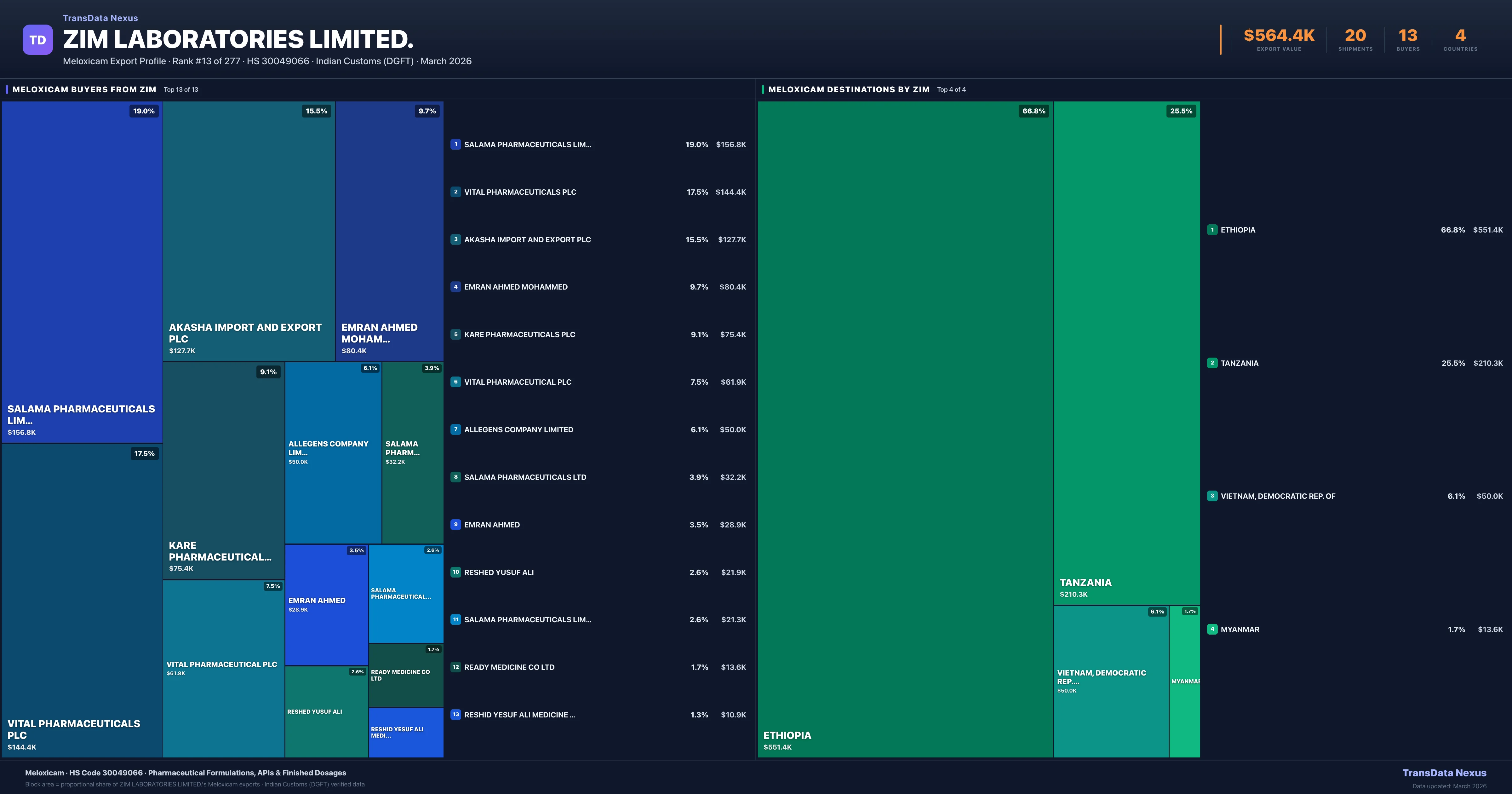 ZIM Laboratories Limited. — Meloxicam Export Profile: Buyers & Destinations
