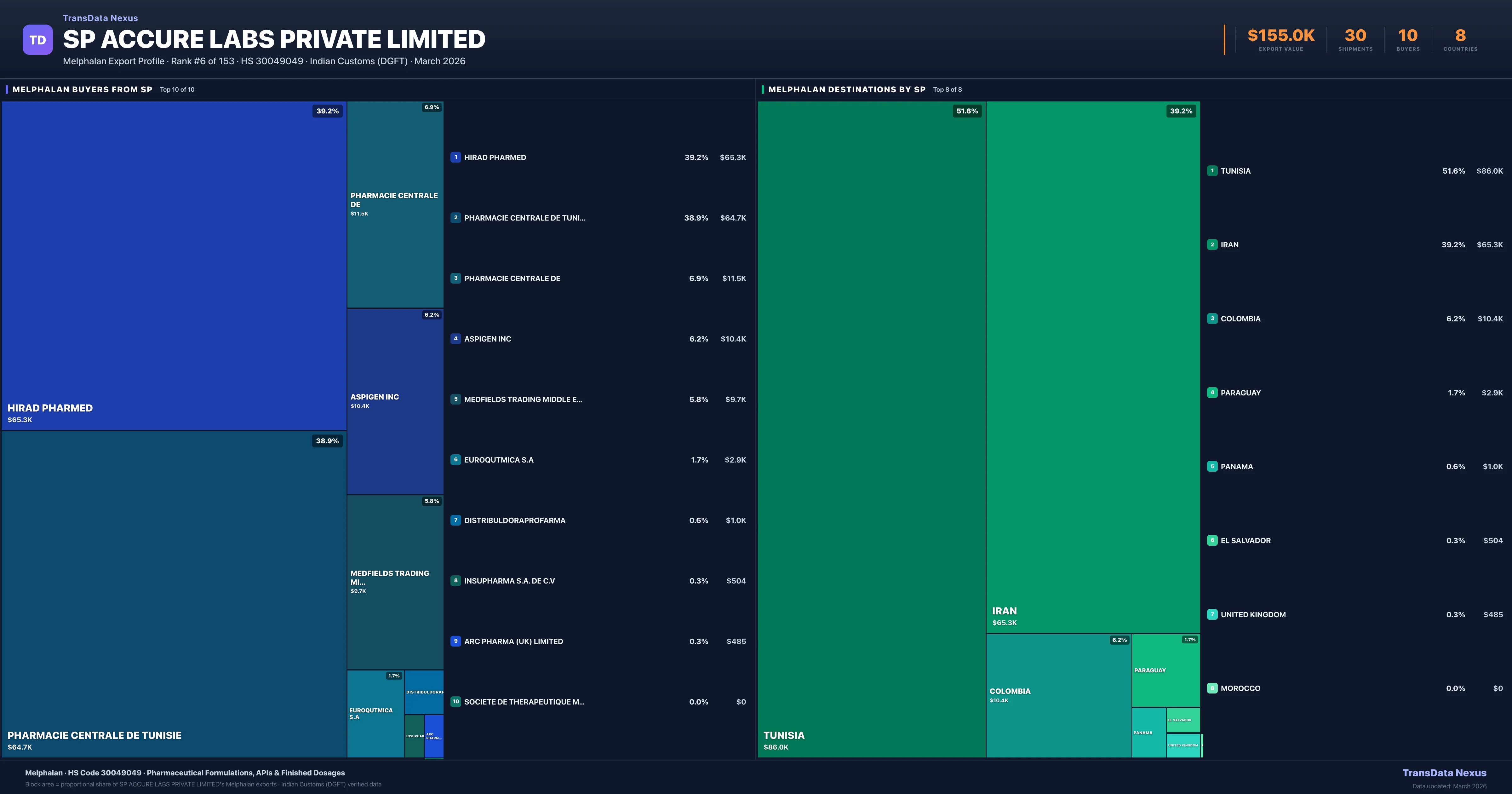 SP Accure Labs Private Limited β Melphalan Export Profile: Buyers & Destinations