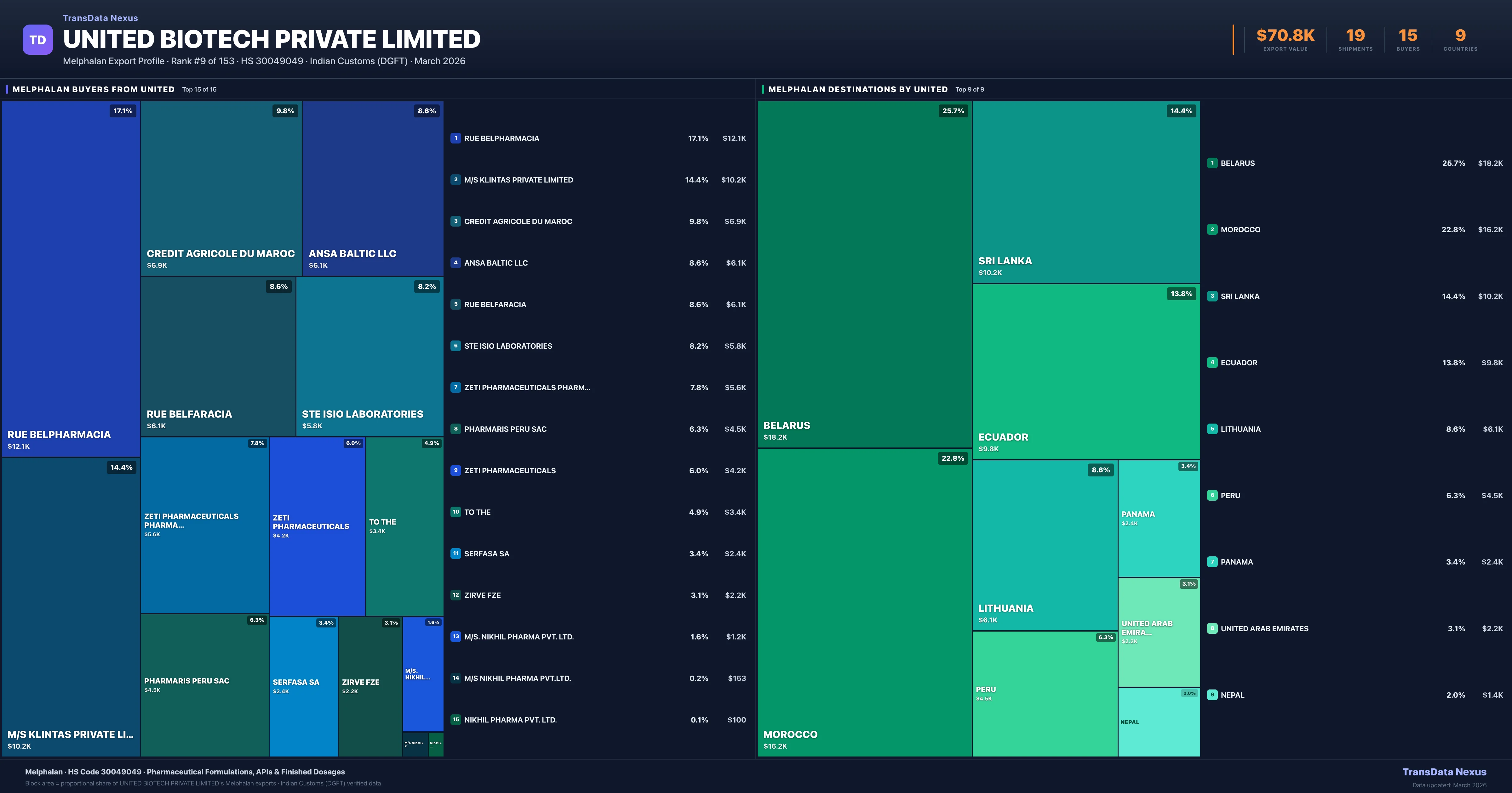 United Biotech Private Limited — Melphalan Export Profile: Buyers & Destinations