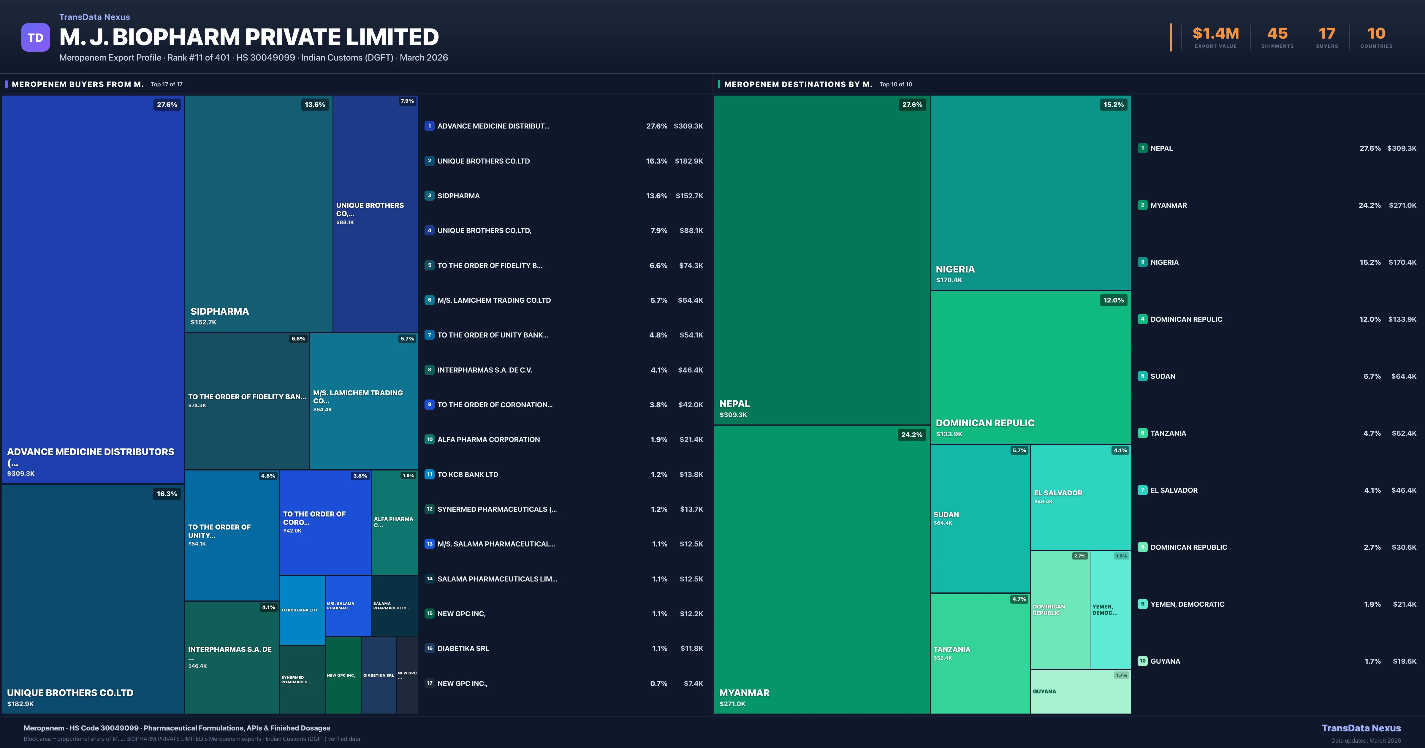 M. J. Biopharm Private Limited — Meropenem Export Profile: Buyers & Destinations