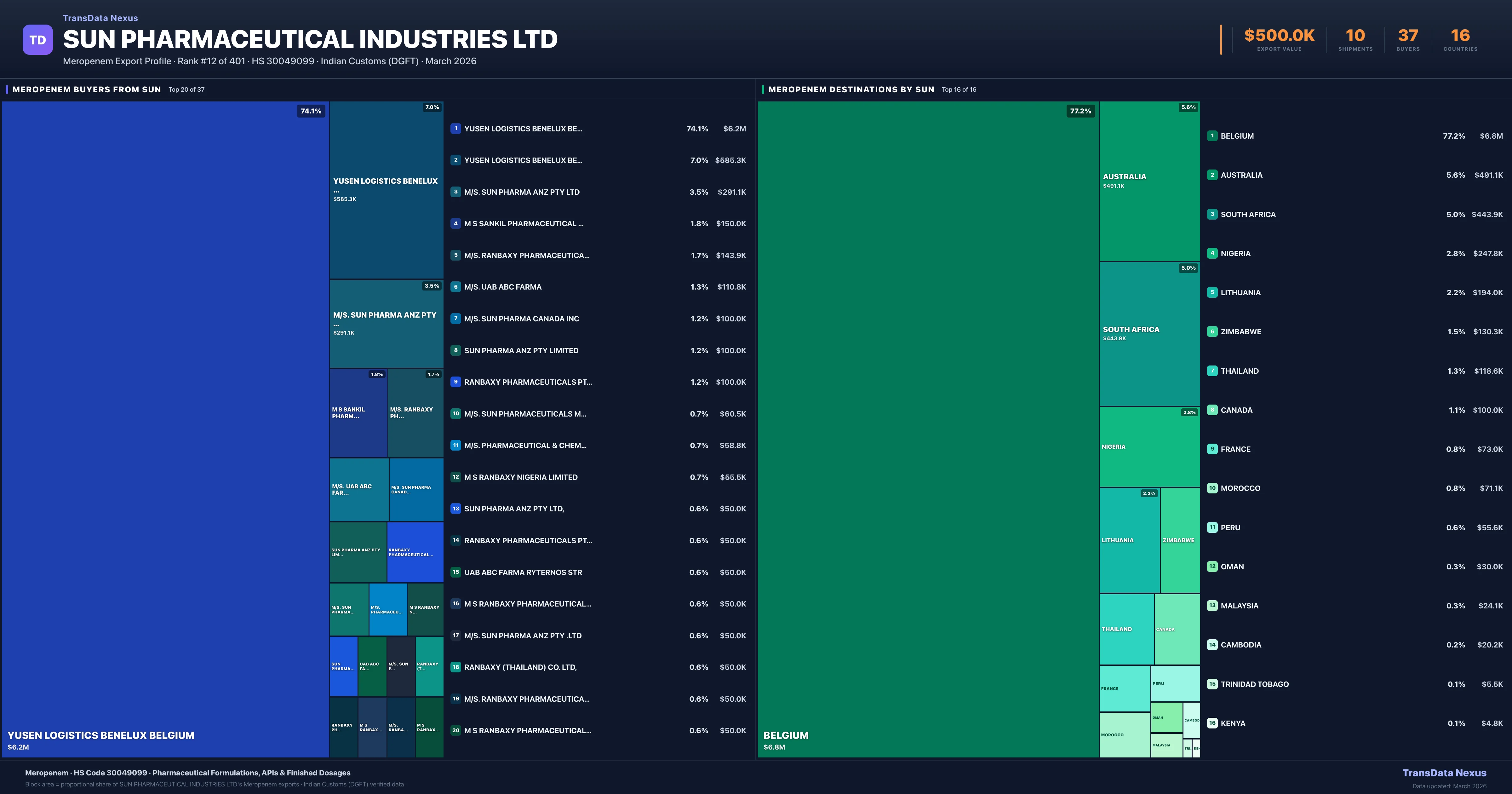 Sun Pharmaceutical Industries Ltd — Meropenem Export Profile: Buyers & Destinations