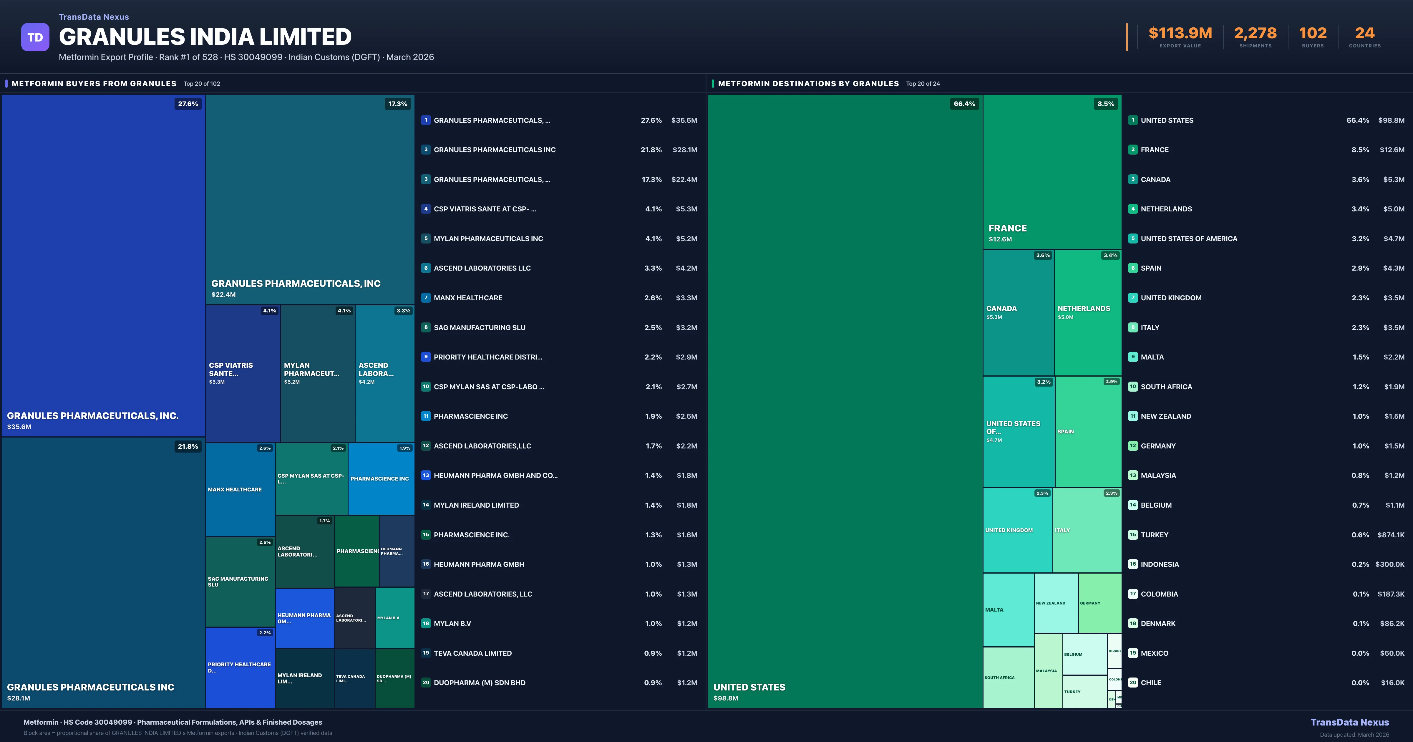 Granules India Limited — Metformin Export Profile: Buyers & Destinations