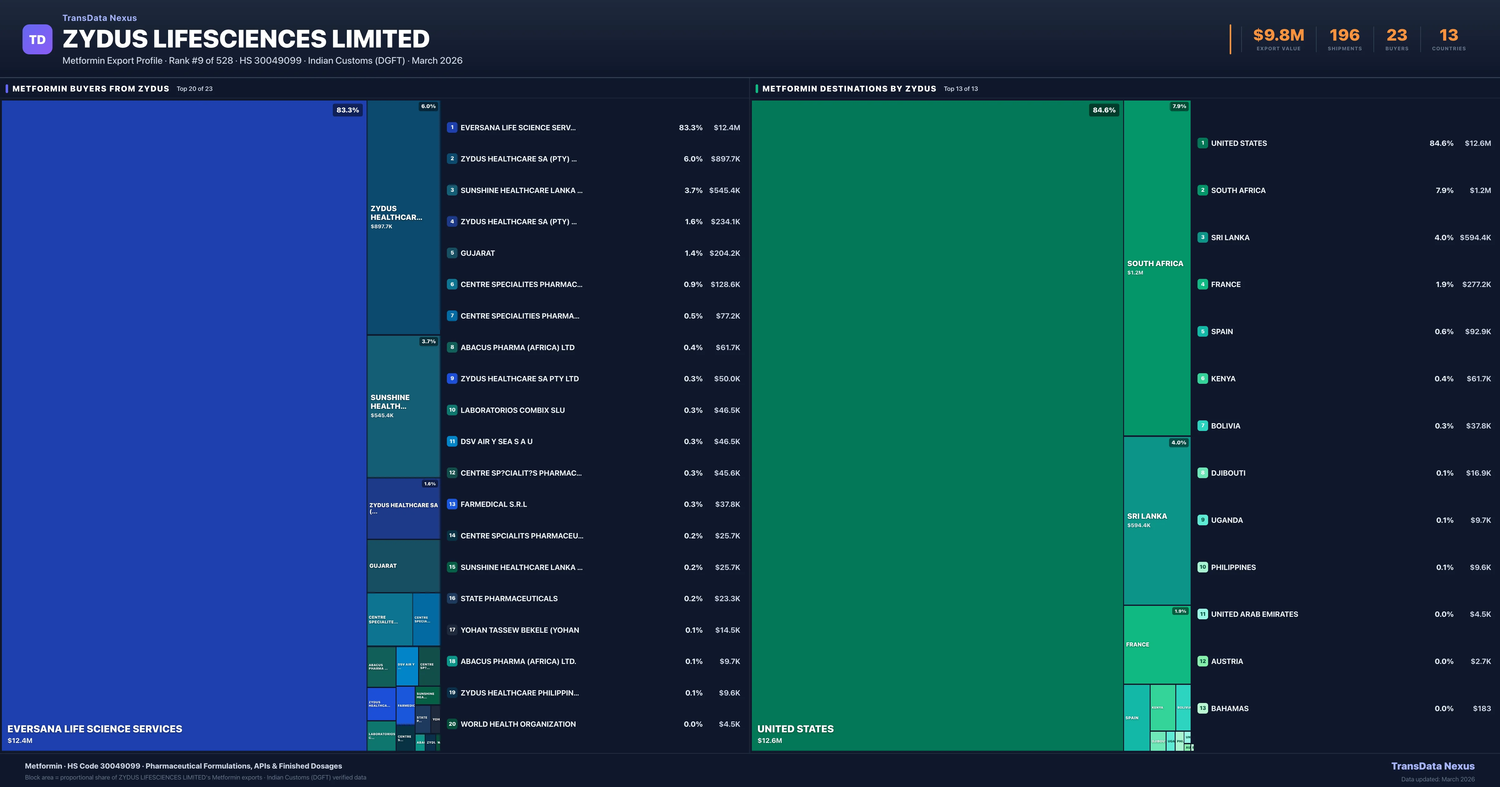Zydus Lifesciences Limited β Metformin Export Profile: Buyers & Destinations