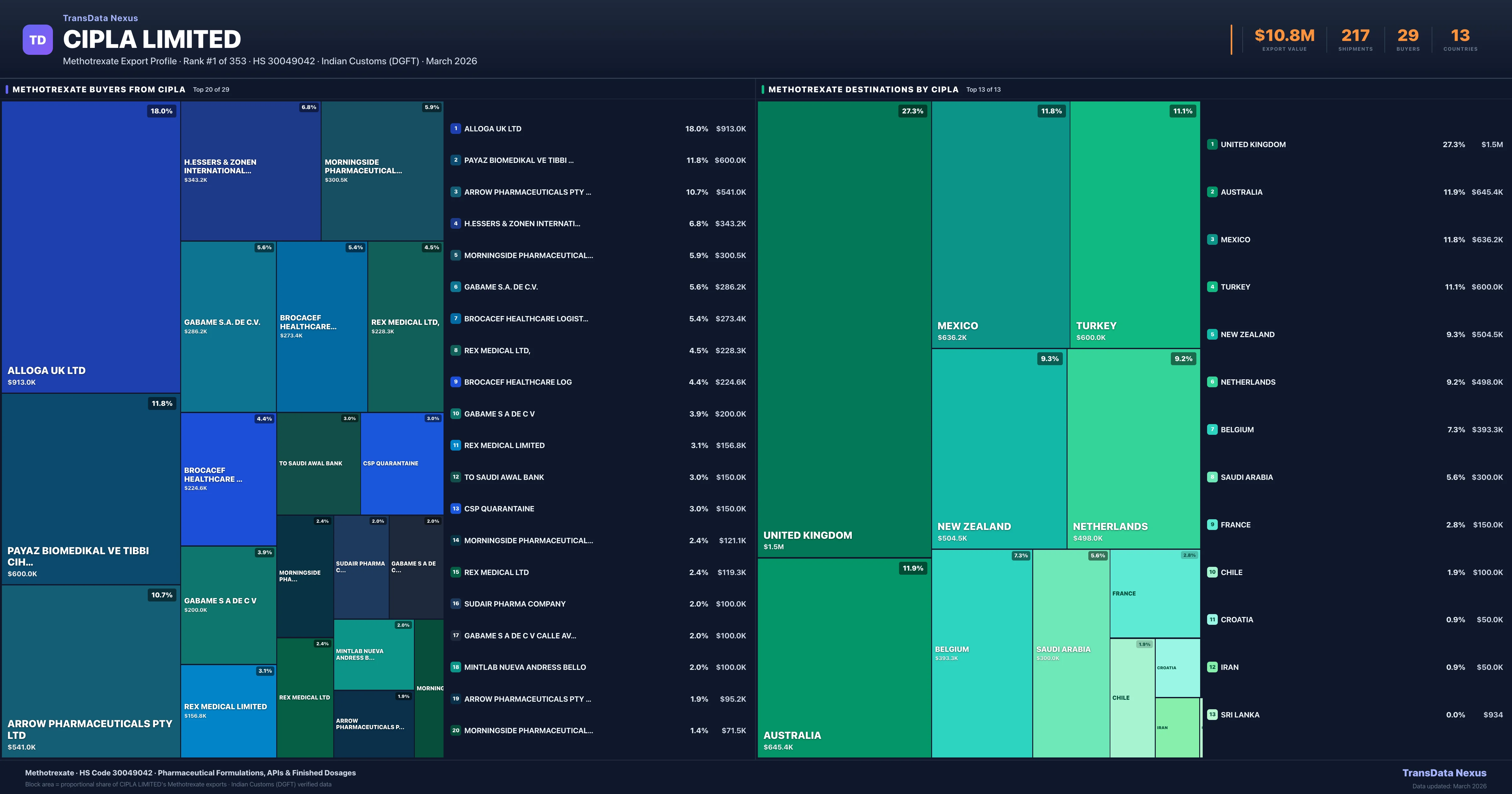 Cipla Limited β Methotrexate Export Profile: Buyers & Destinations