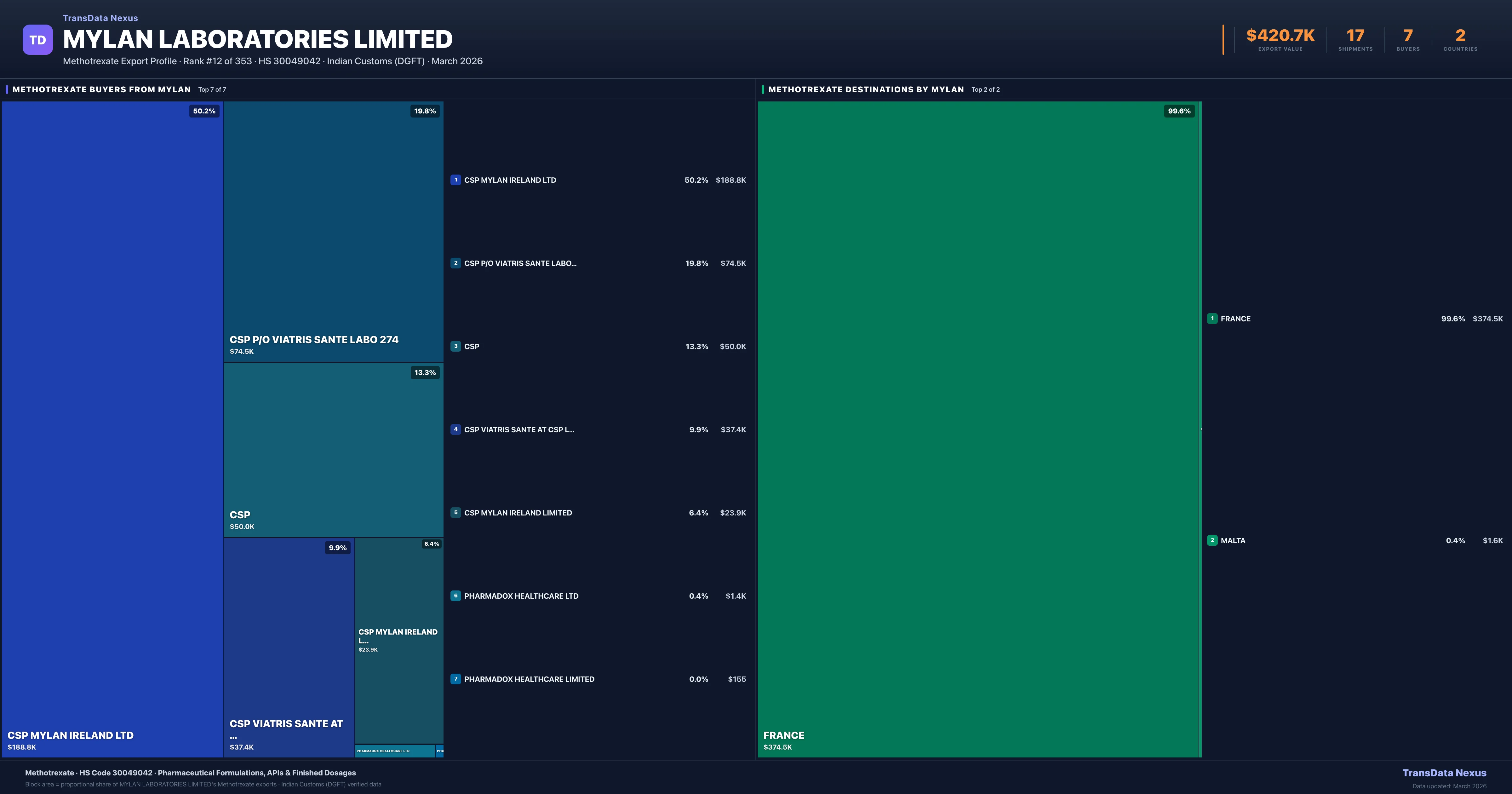 Mylan Laboratories Limited — Methotrexate Export Profile: Buyers & Destinations