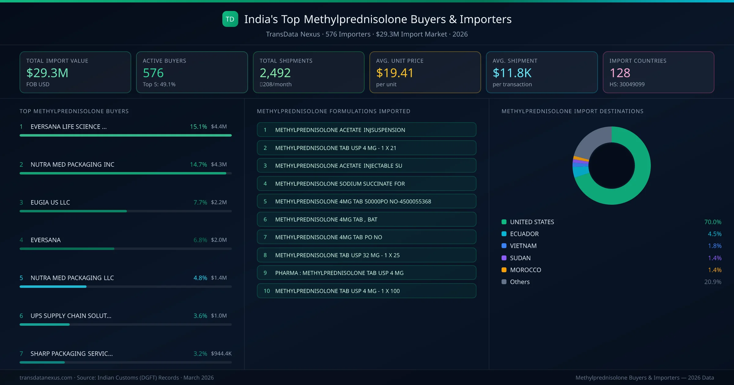 Who Buys Methylprednisolone from India β 576 Importers Behind a $29.3M Market