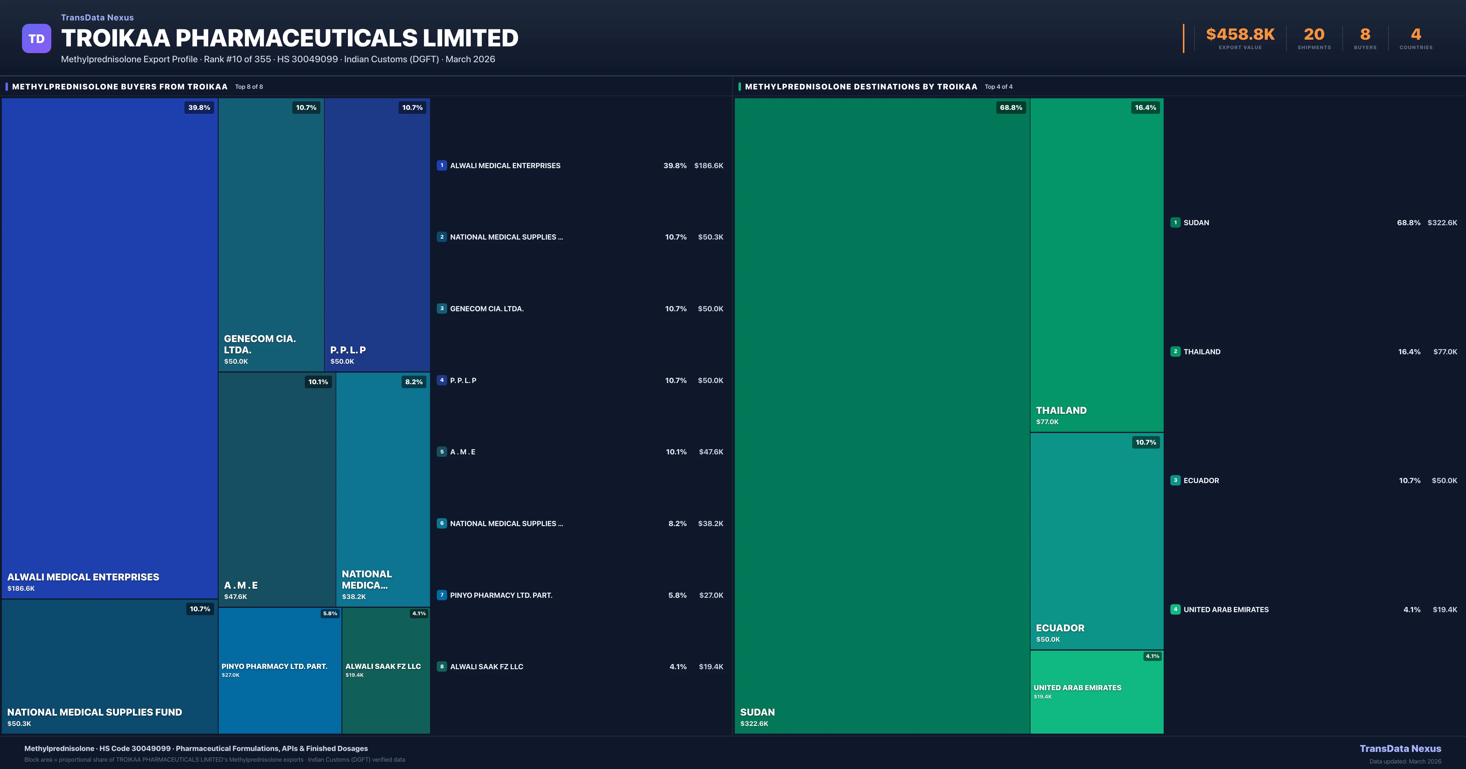 Troikaa Pharmaceuticals Limited — Methylprednisolone Export Profile: Buyers & Destinations
