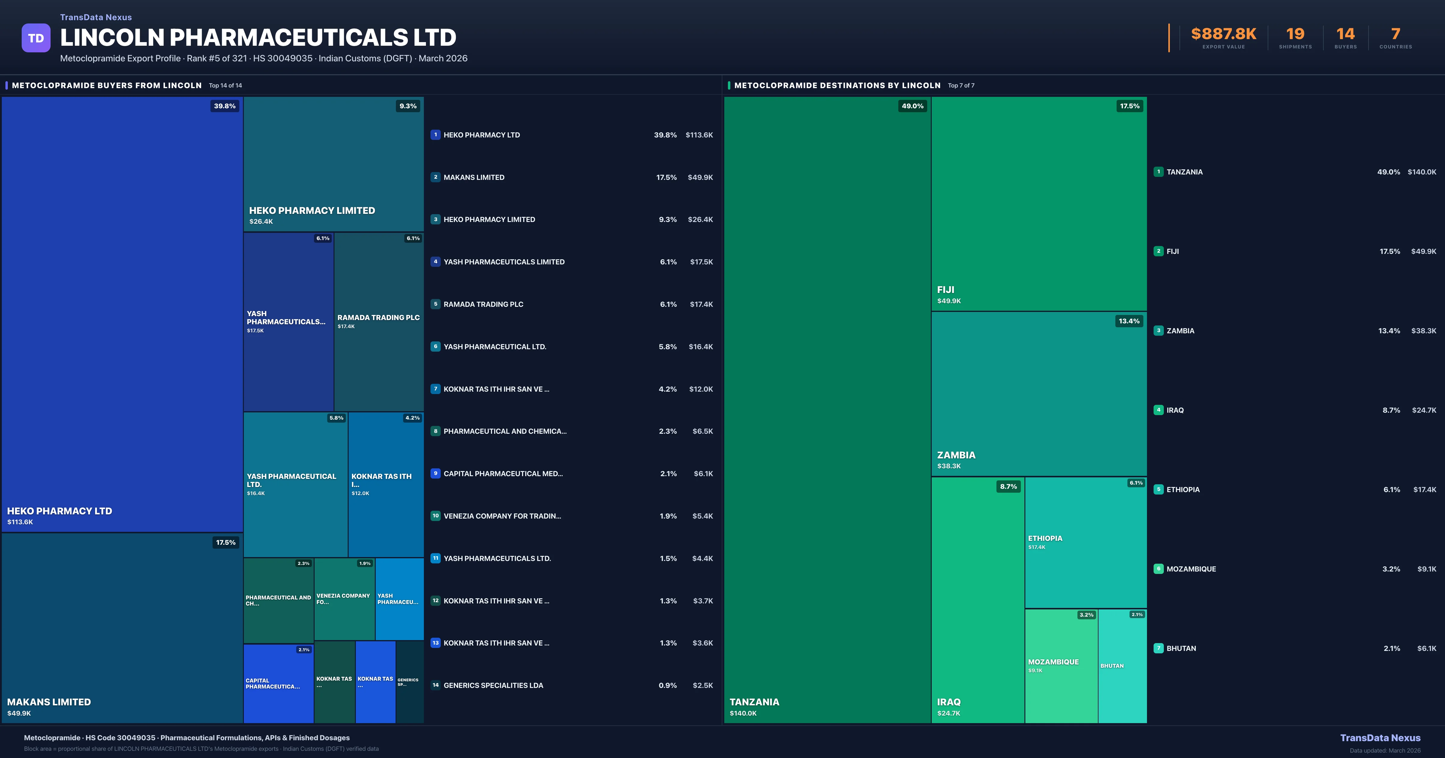 Lincoln Pharmaceuticals Ltd — Metoclopramide Export Profile: Buyers & Destinations