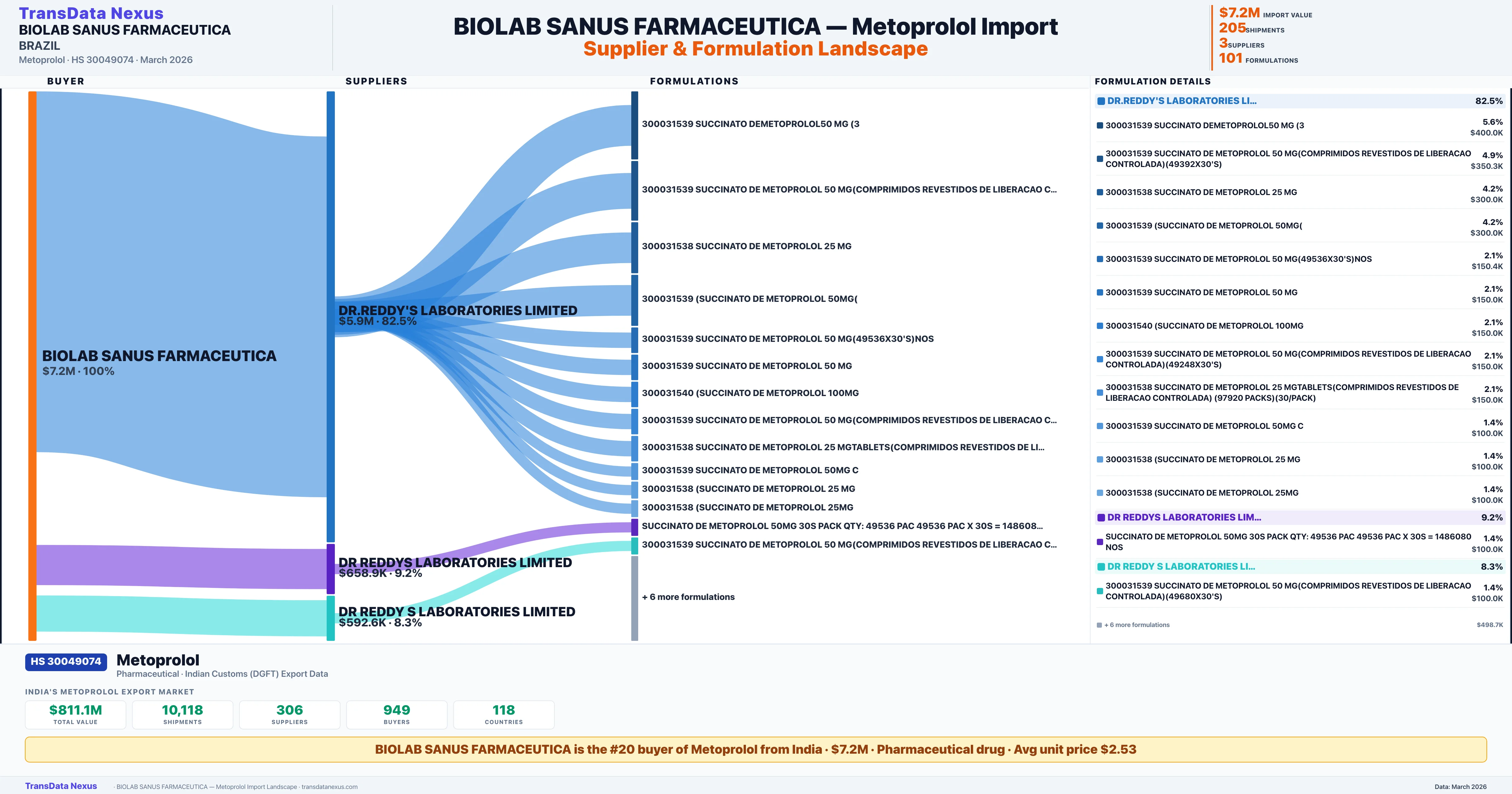 BIOLAB SANUS FARMACEUTICA β Metoprolol Import Profile: Suppliers, Formulations & Sources