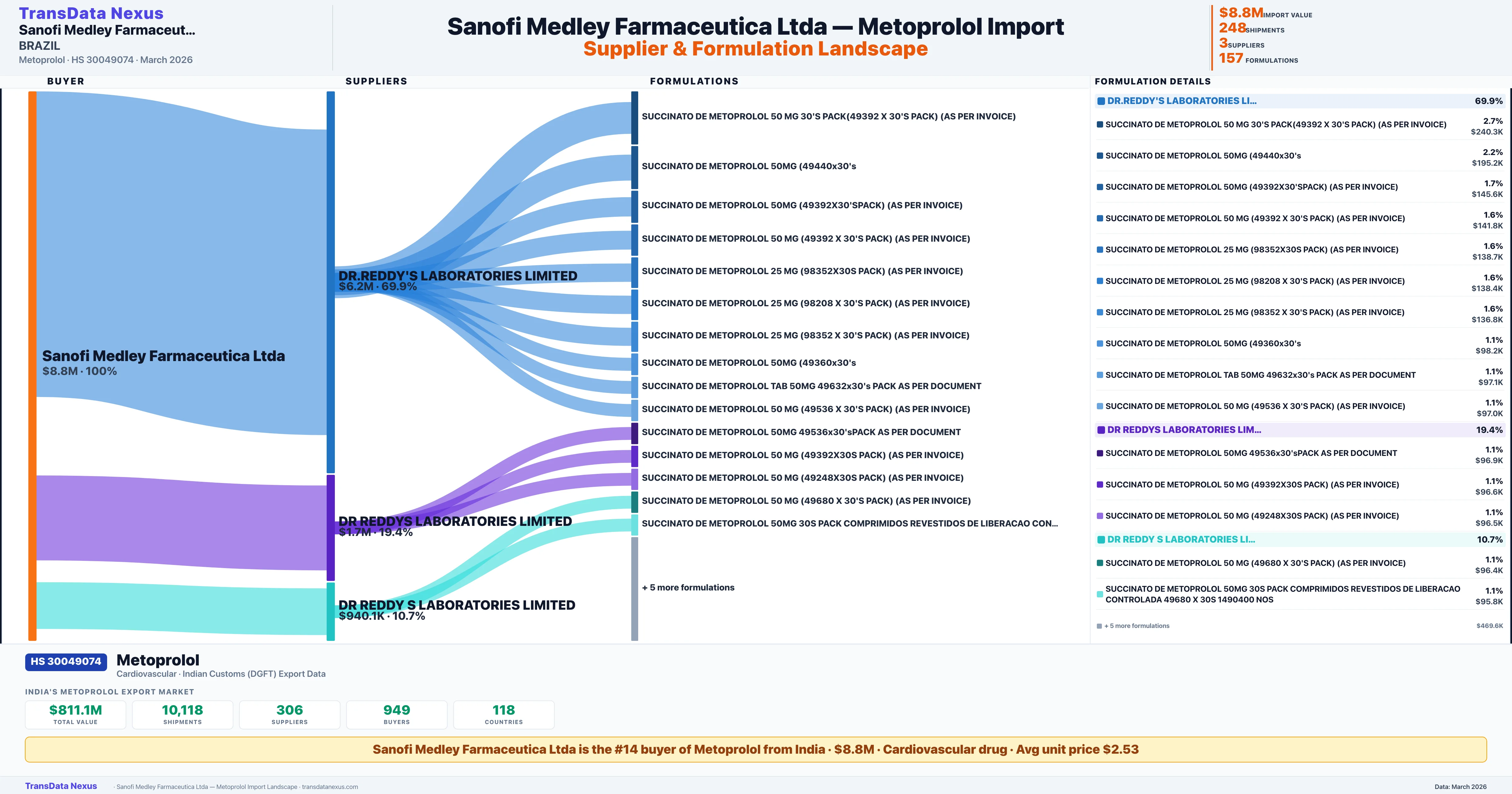 SANOFI MEDLEY FARMACEUTICA LTDA β Metoprolol Import Profile: Suppliers, Formulations & Sources