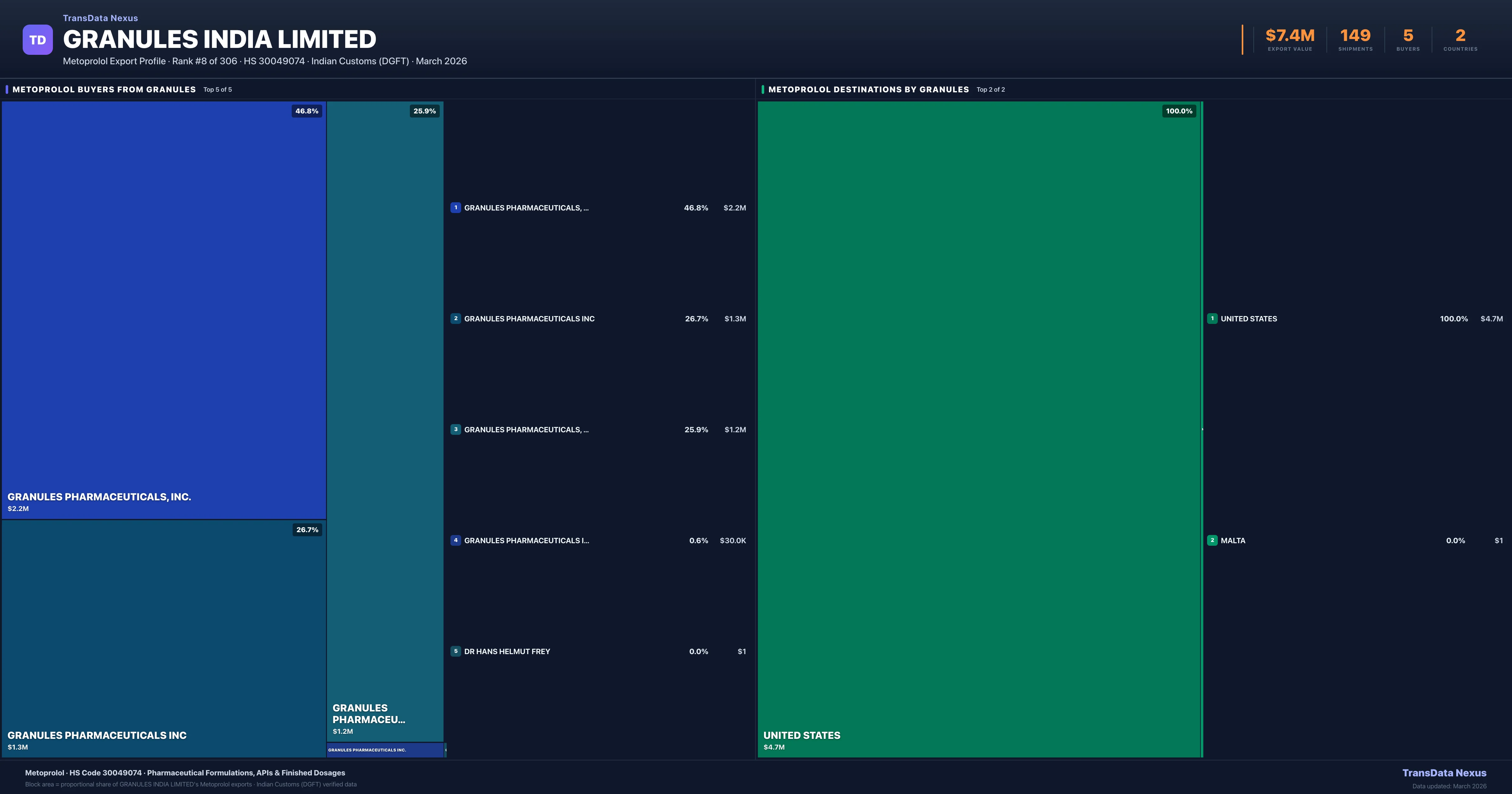 Granules India Limited — Metoprolol Export Profile: Buyers & Destinations