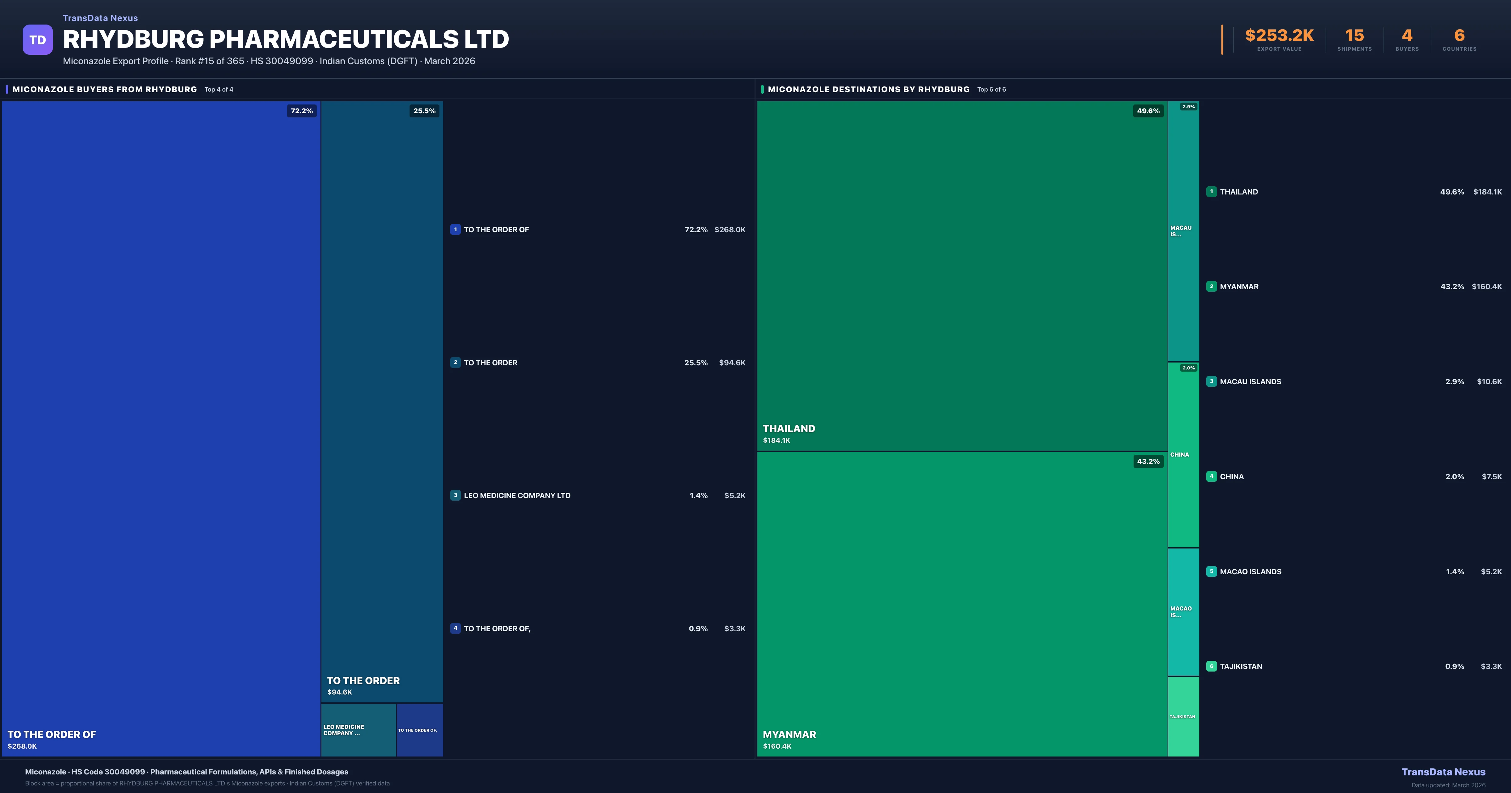 Rhydburg Pharmaceuticals Ltd — Miconazole Export Profile: Buyers & Destinations