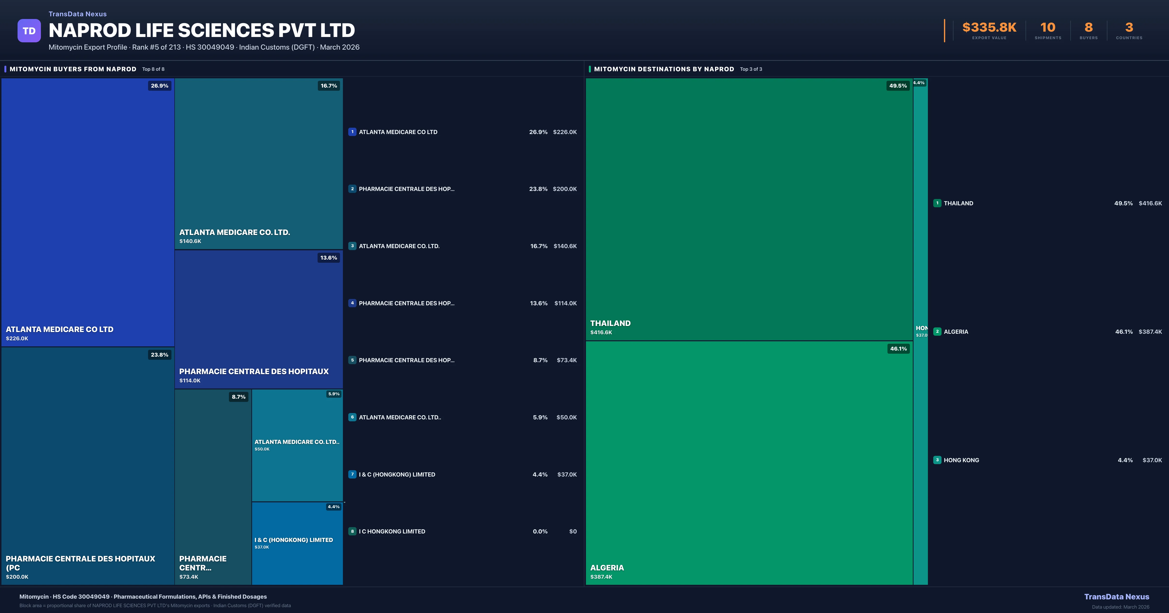 Naprod Life Sciences Pvt Ltd — Mitomycin Export Profile: Buyers & Destinations
