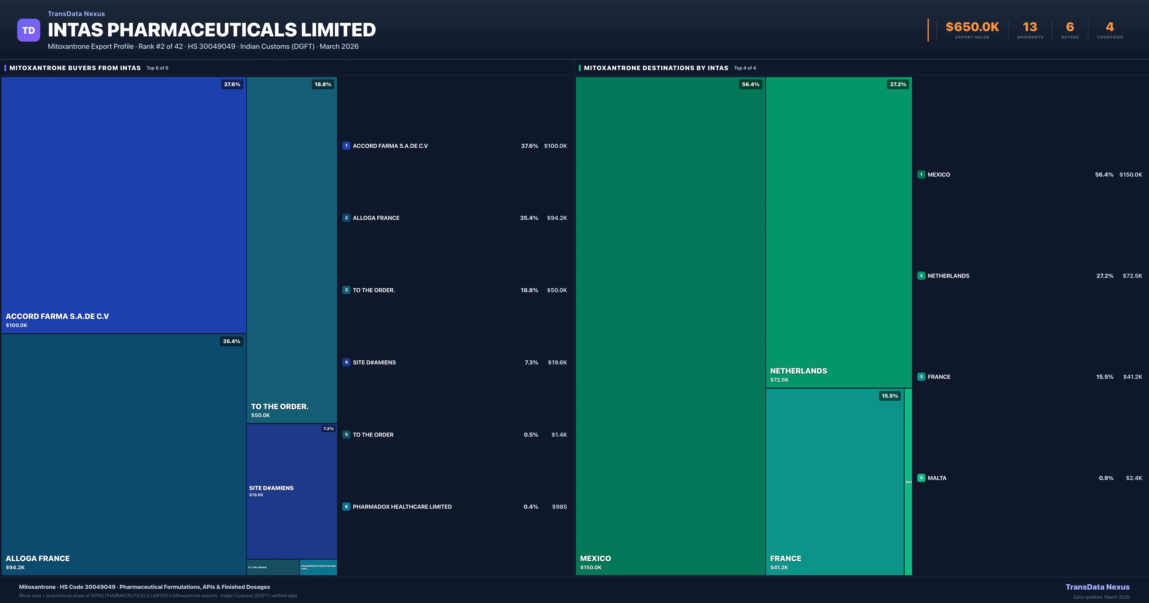 Intas Pharmaceuticals Limited — Mitoxantrone Export Profile: Buyers & Destinations