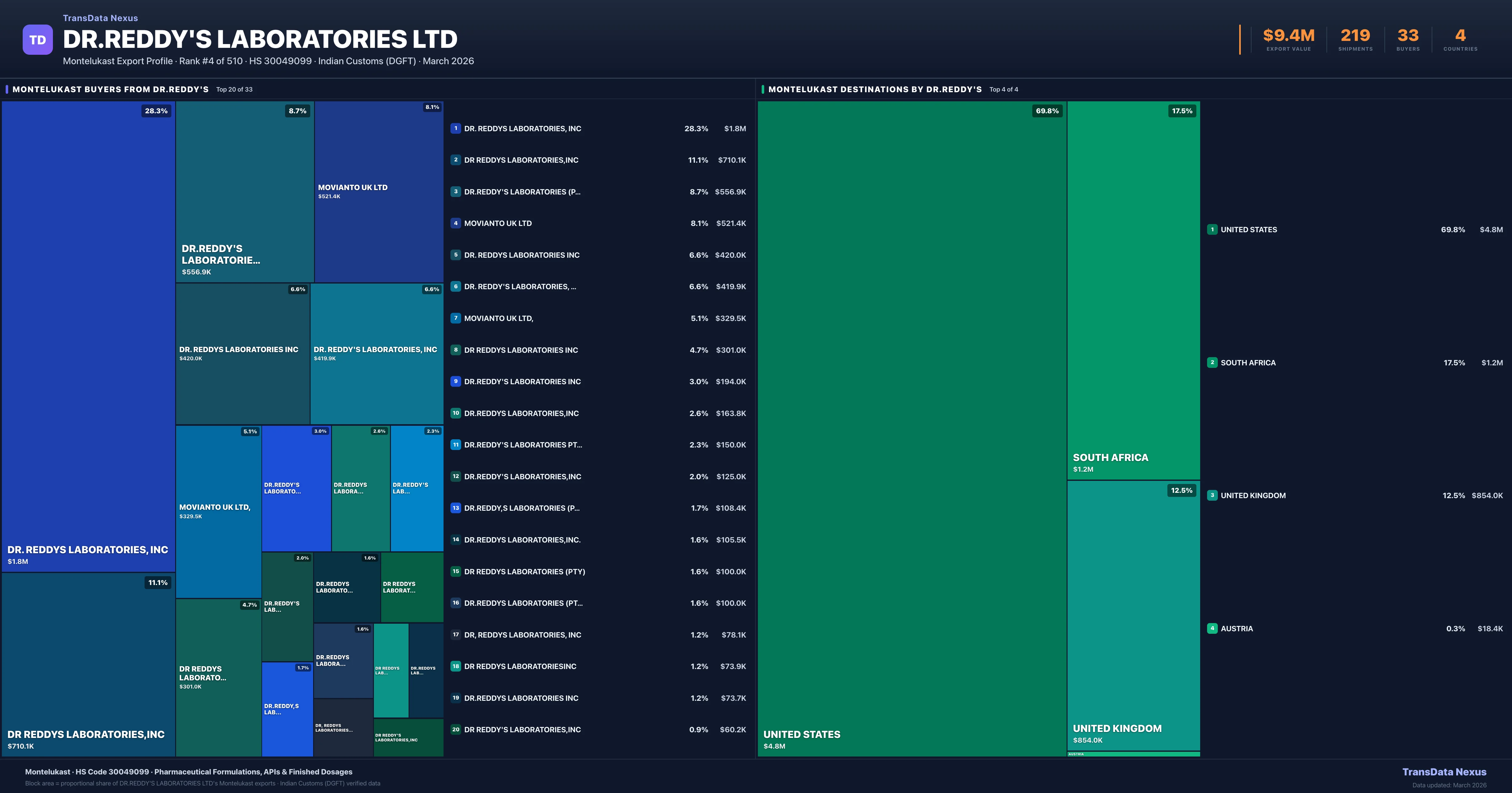 Dr.reddy's Laboratories Ltd — Montelukast Export Profile: Buyers & Destinations