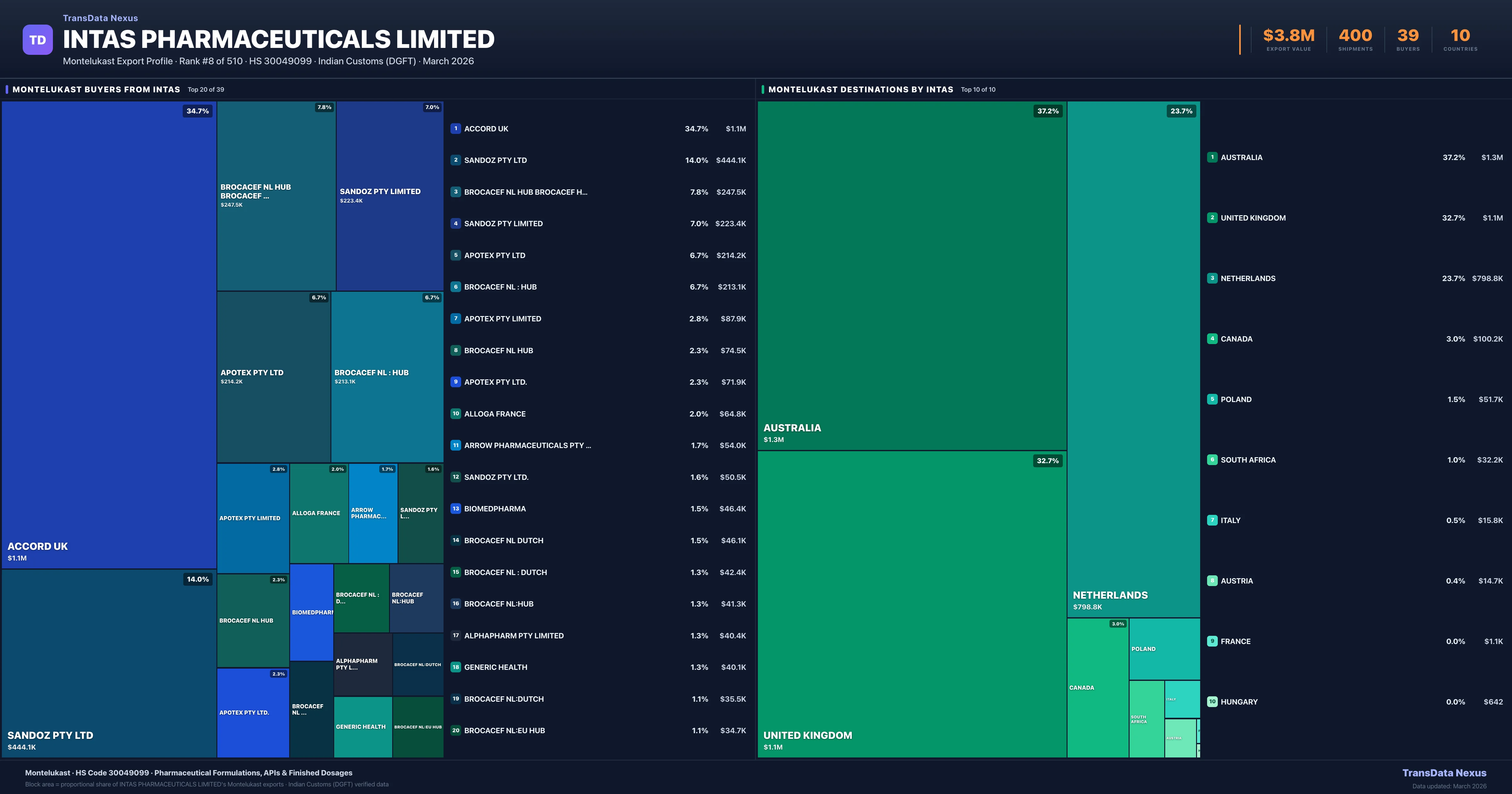 Intas Pharmaceuticals Limited — Montelukast Export Profile: Buyers & Destinations