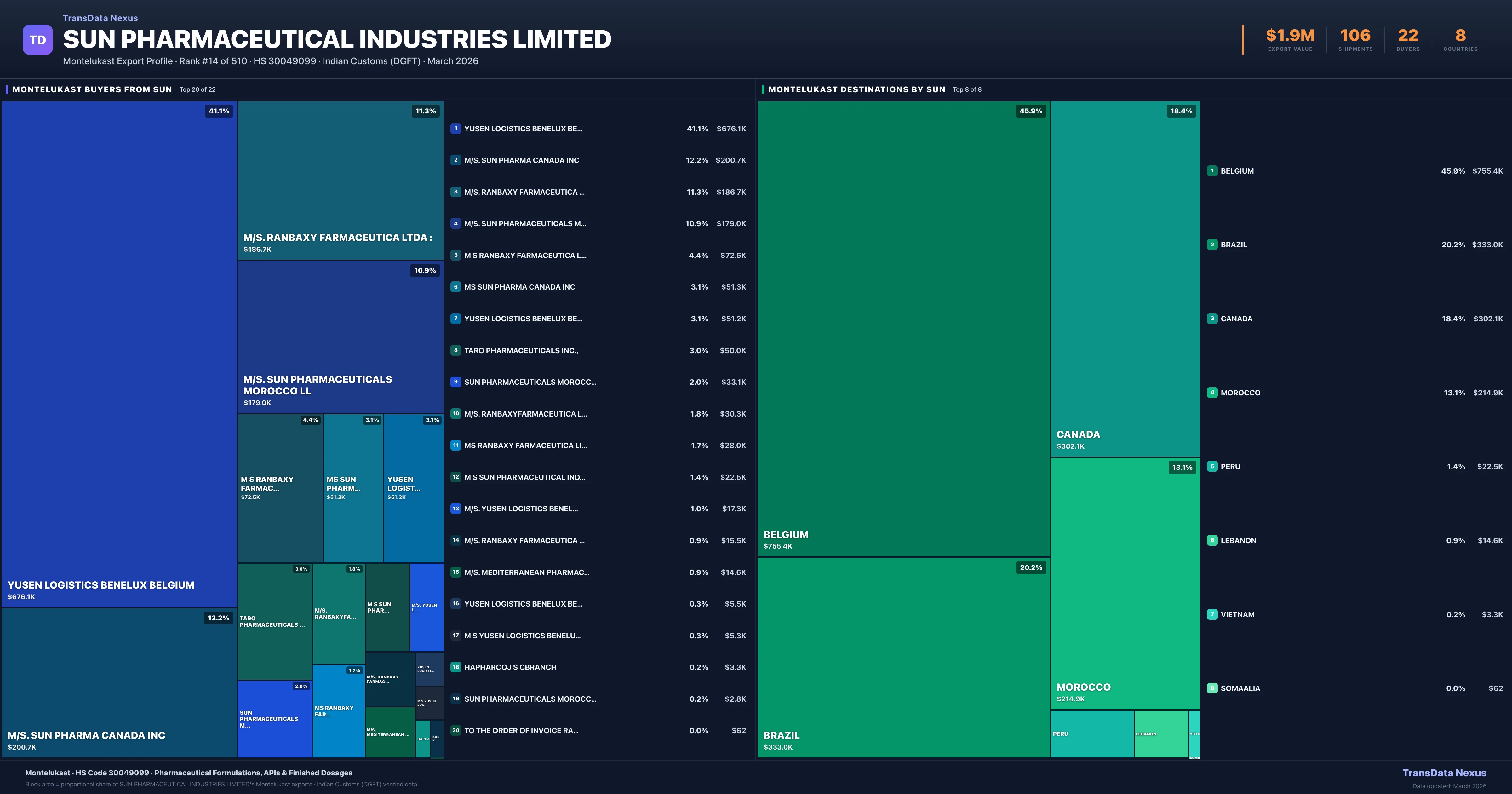 SUN Pharmaceutical Industries Limited — Montelukast Export Profile: Buyers & Destinations