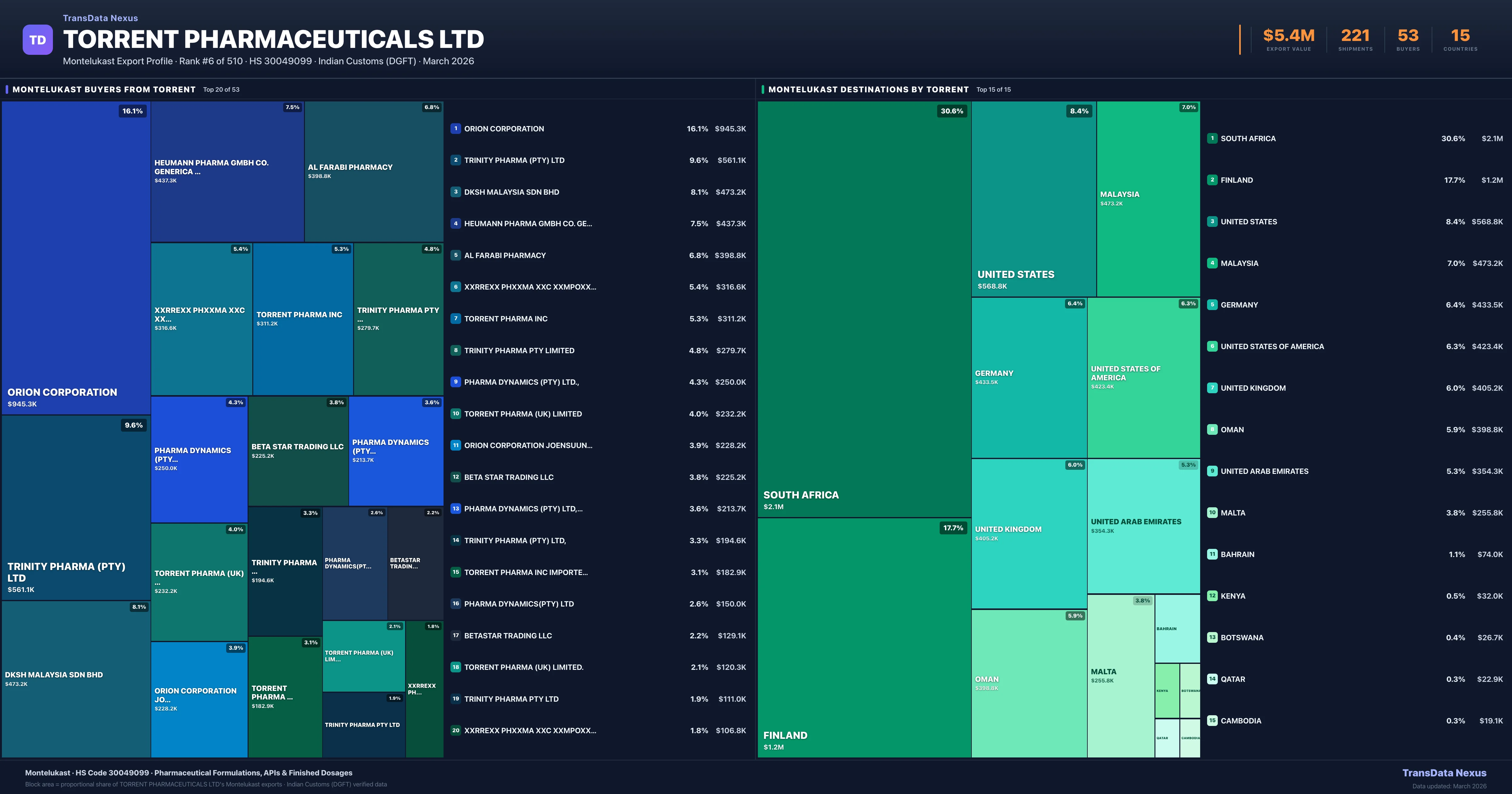 Torrent Pharmaceuticals Ltd — Montelukast Export Profile: Buyers & Destinations