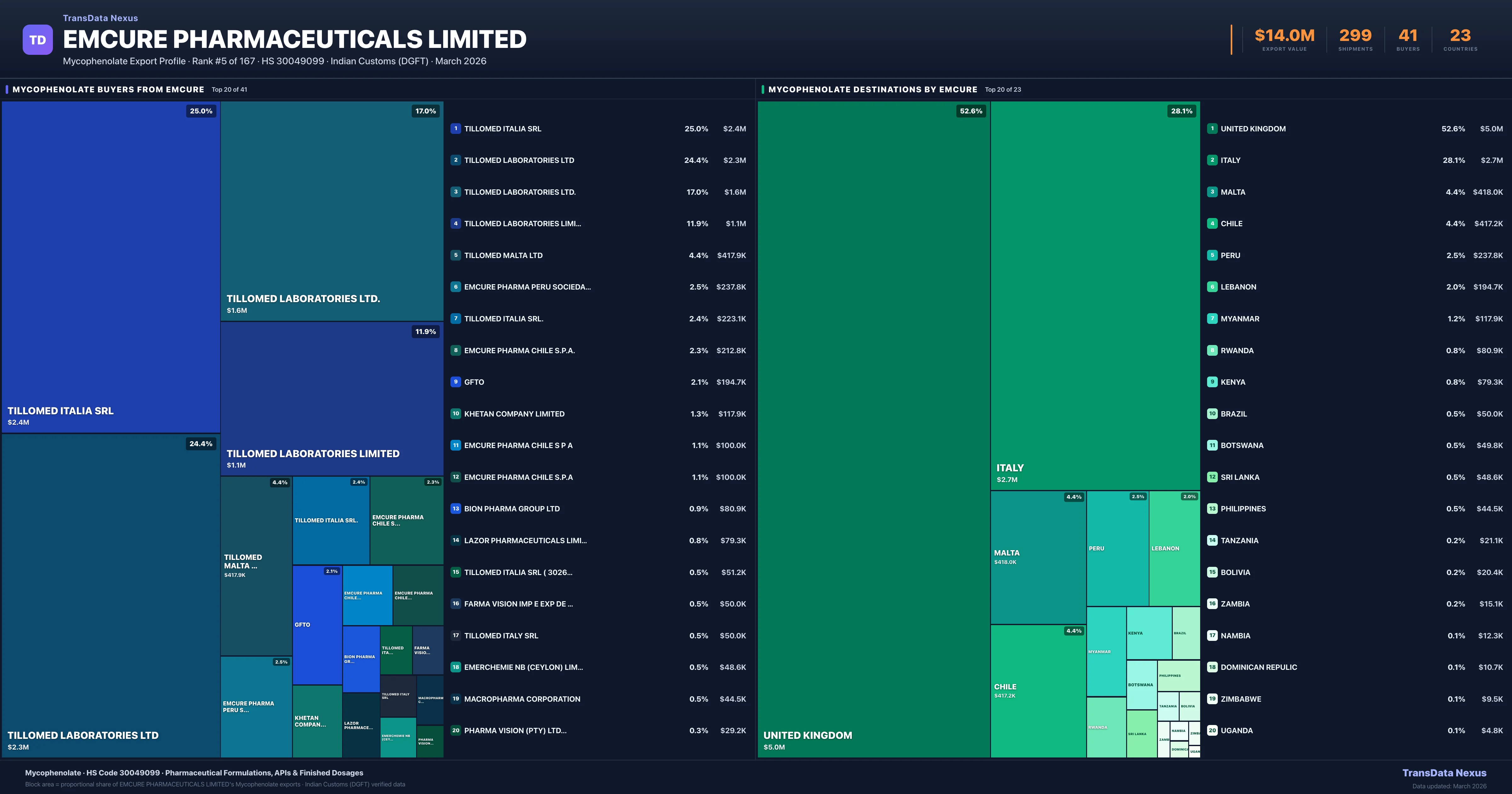 Emcure Pharmaceuticals Limited — Mycophenolate Export Profile: Buyers & Destinations
