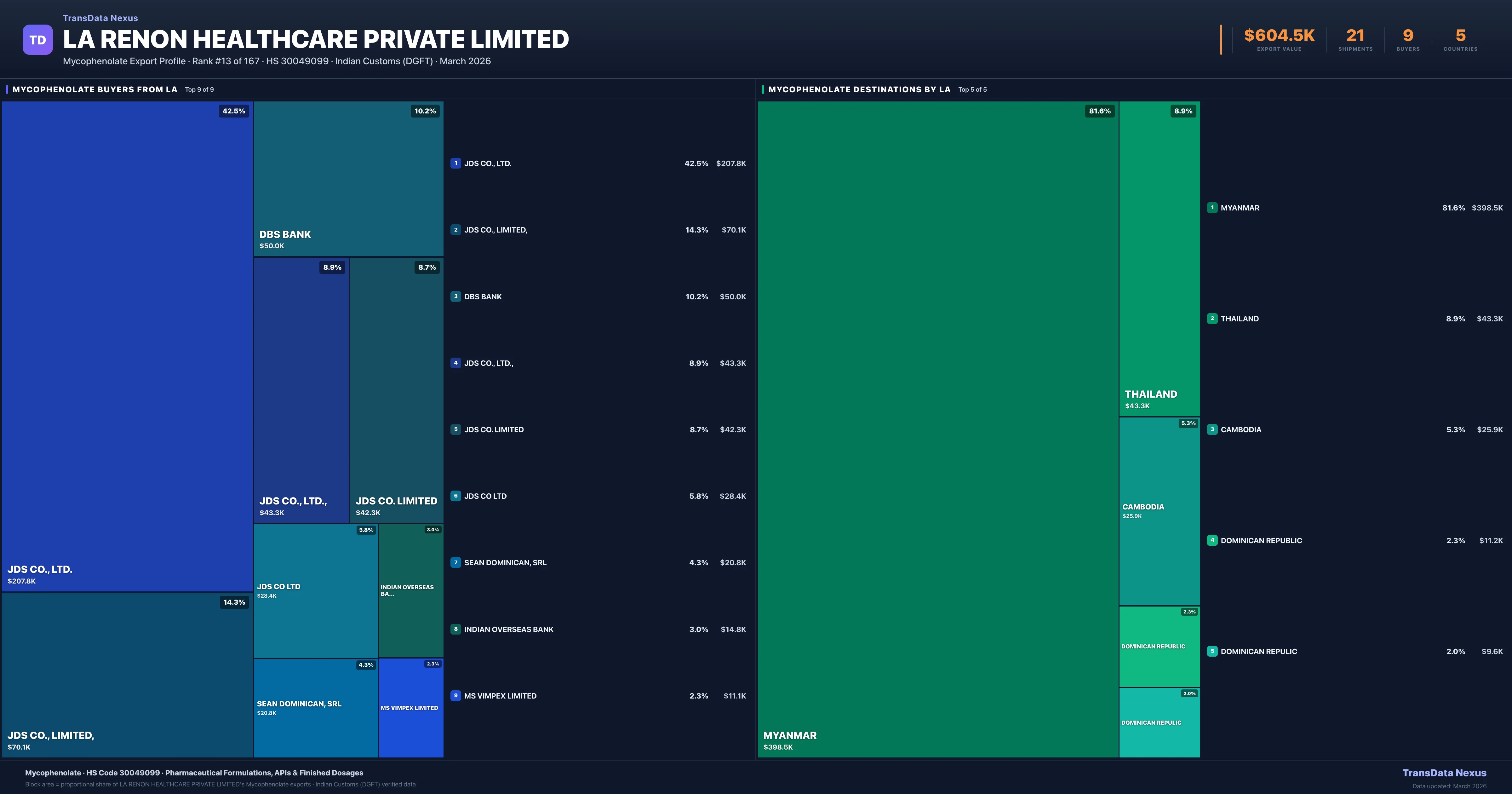 La Renon Healthcare Private Limited — Mycophenolate Export Profile: Buyers & Destinations