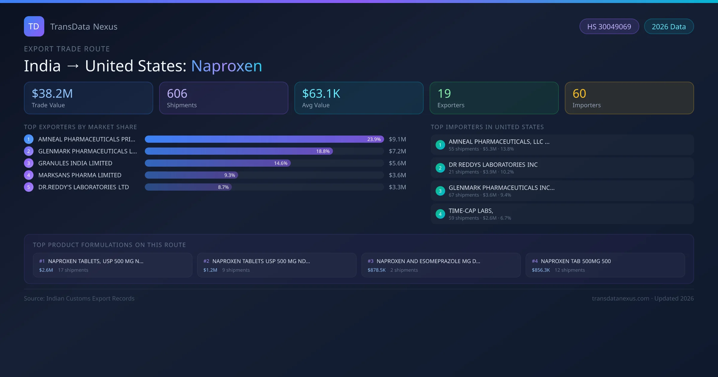 - 1.Route Identification: India to United States export trade corridor identified from Indian Customs (DGFT) records for Naproxen.
