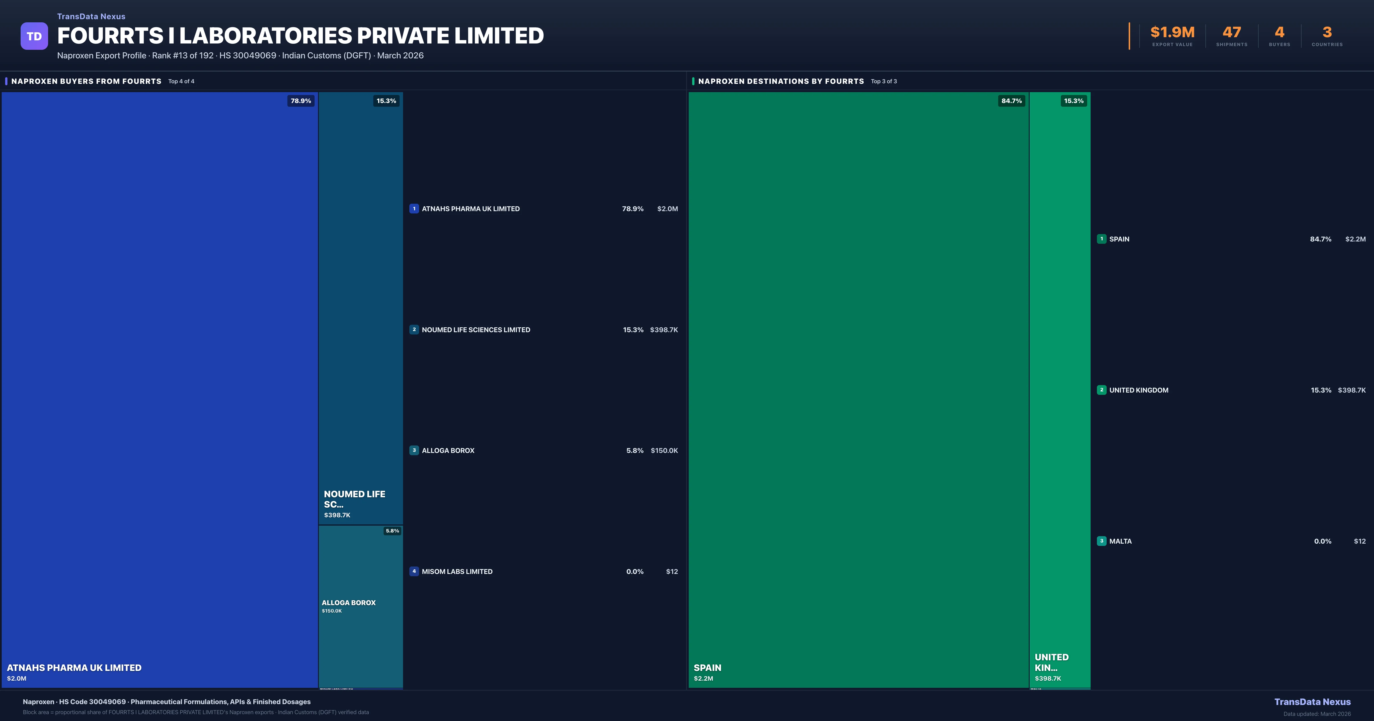 Fourrts I Laboratories Private Limited — Naproxen Export Profile: Buyers & Destinations