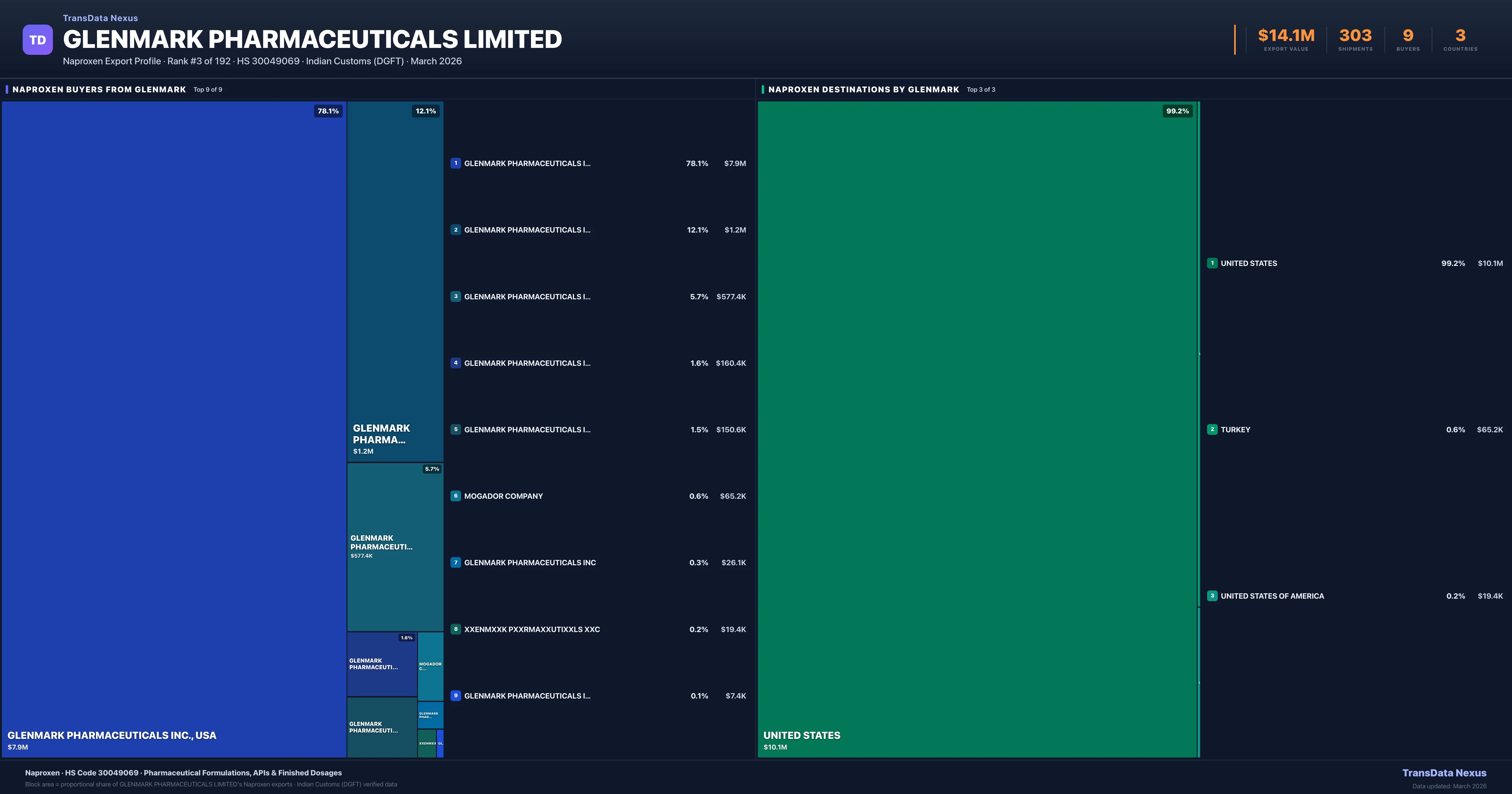 Glenmark Pharmaceuticals Limited — Naproxen Export Profile: Buyers & Destinations