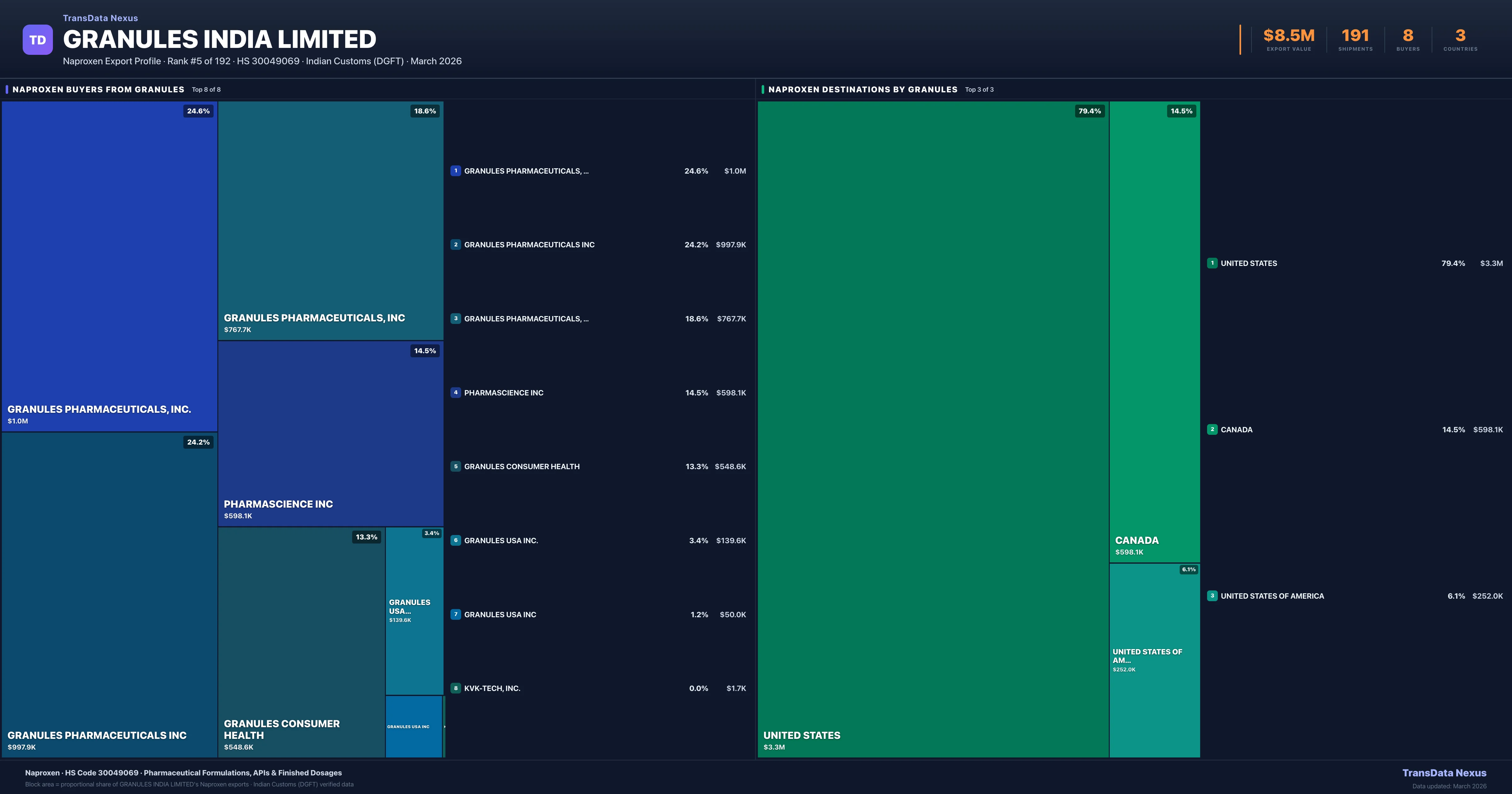 Granules India Limited — Naproxen Export Profile: Buyers & Destinations